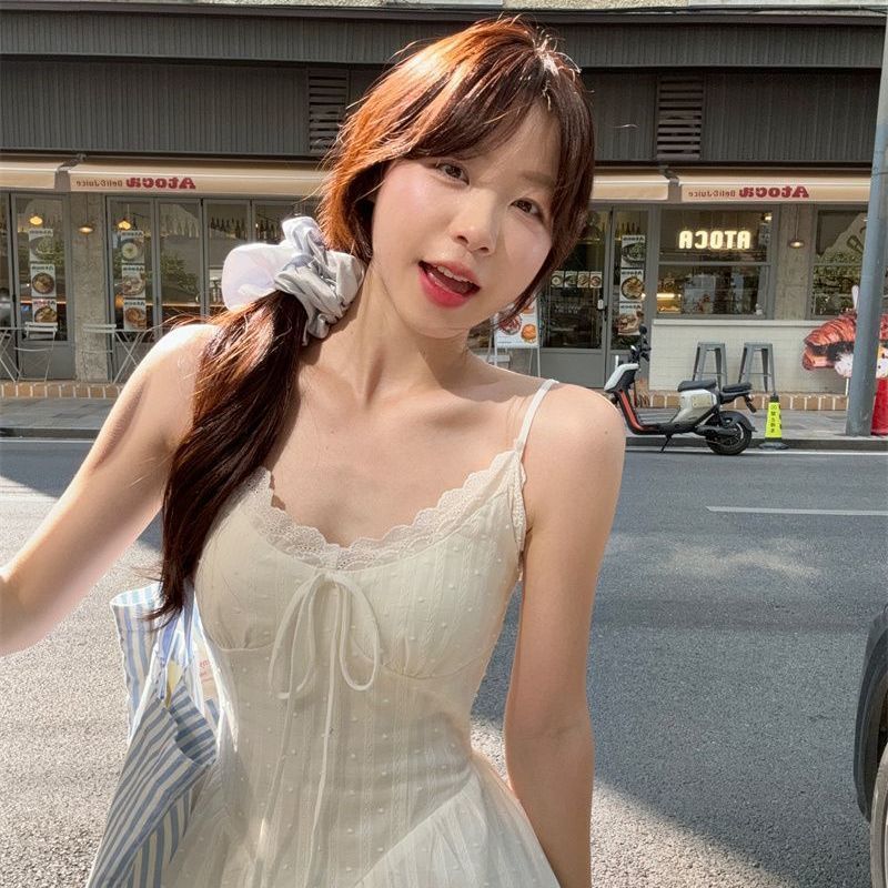 Product information: Pattern: Jacquard Color: white #6644# Original lining smocking Waist Type: Mid waist Size: S,M,L,XL Main fabric composition: Polyester (polyester fiber) Sleeve length: sleeveless Skirt Category: Dress
