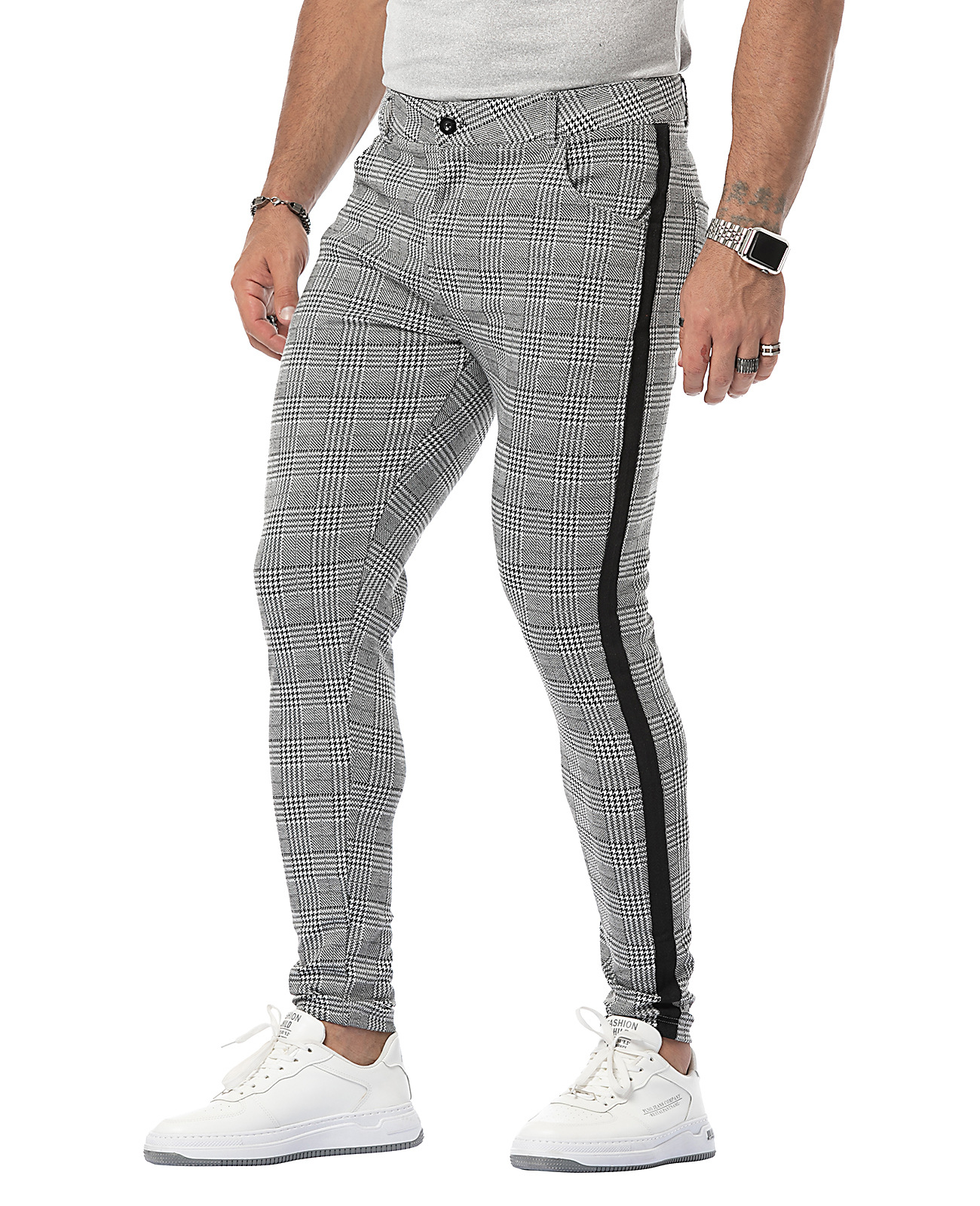 Color: KC181 plaid trousers with black edges and KC182 plaid trousers with white edges.