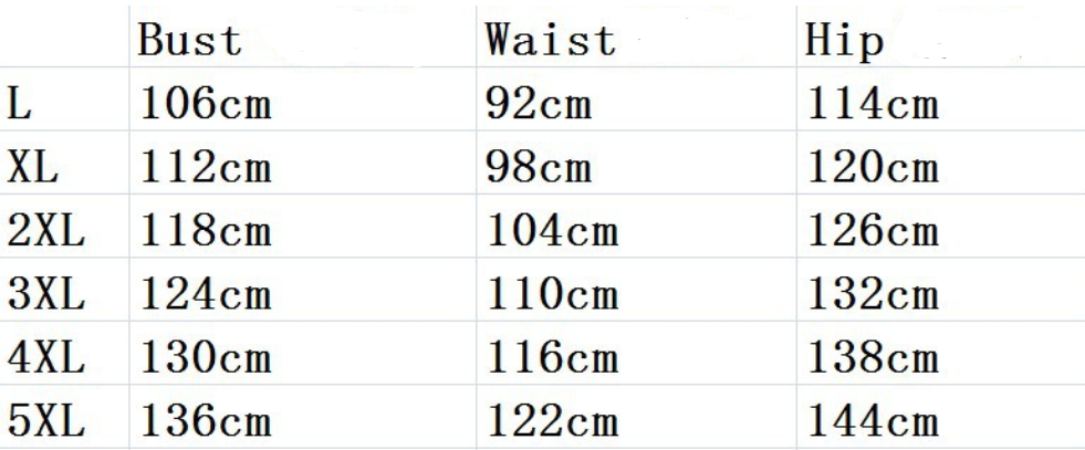 Size; L, XL, 2XL, 3XL, 4XL, 5XL