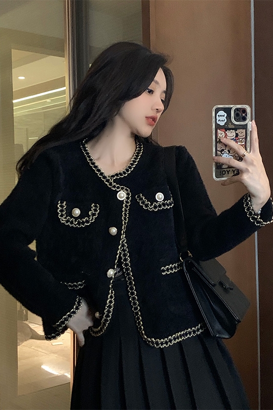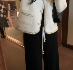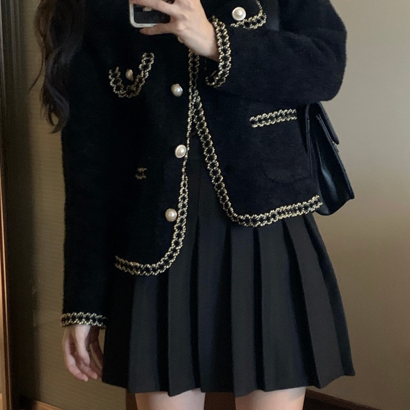 Color classification: Black jacket, white jacket, pleated skirt, black trousers