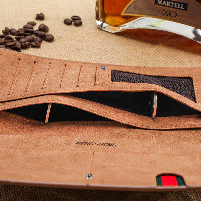 The internal structure of the packet: secret compartment, bill holder, photo slot, change slot, passbook slot, ID slot, card slot, key slot, check slot