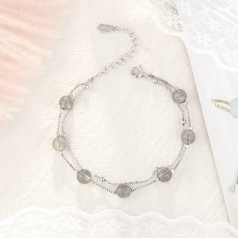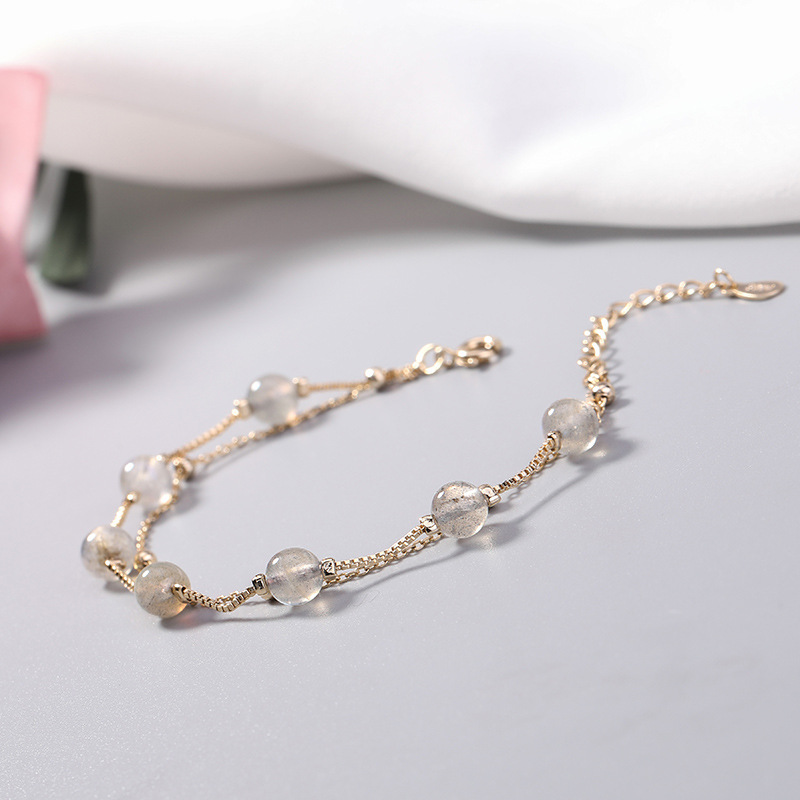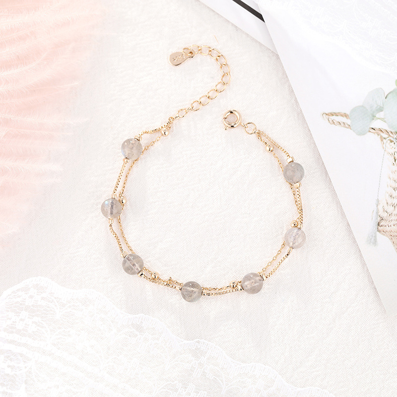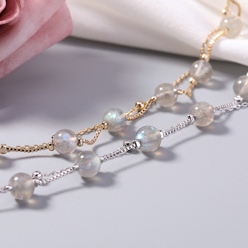 Color: Moonstone Double Bracelet-White Gold, Moonstone Double Bracelet-Real Gold