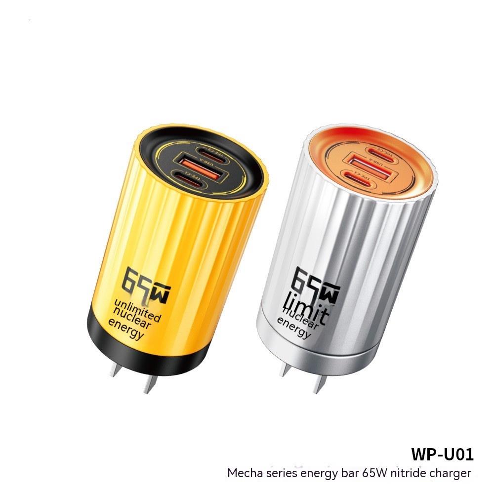 Product information:Name: mecha series Energy Bar 65W gallium nitride charger Model: WP-U01 Material: PC Pin type: medium gauge/CN Output port type and quantity: USB * 1,Type-C * 2 Input current voltage: AC100-240V, 50-60Hz