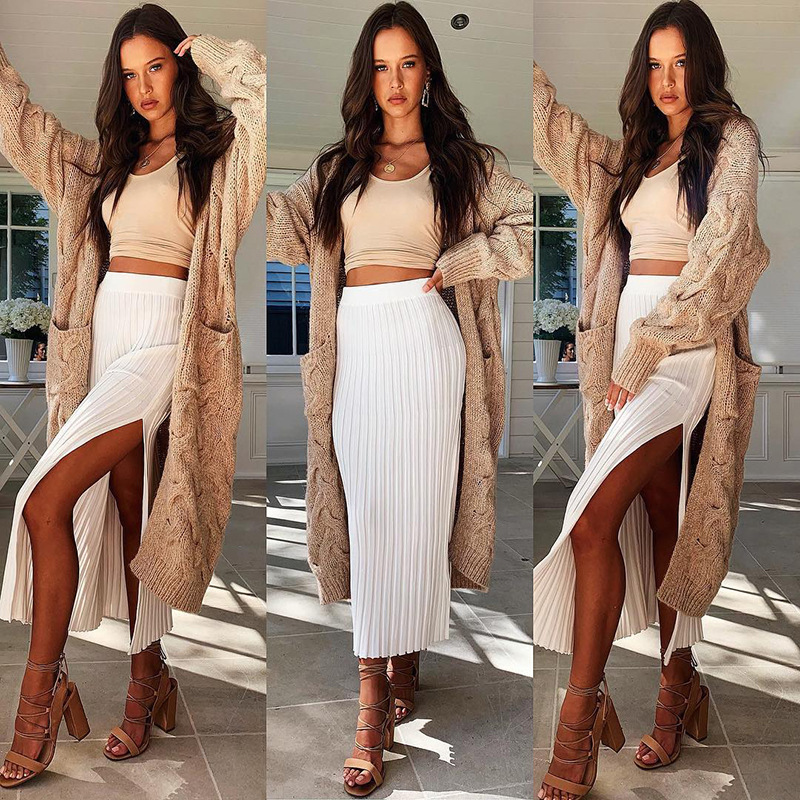 Product information: Pattern: solid color Fabric name: knitted Skirt type: asymmetric skirt Color: White Elastic: medium elastic Main fabric composition: Polyester Fiber Size: S,M,L Style type: street fashion Skirt length: mid-length skirt Skirt Category: skirt