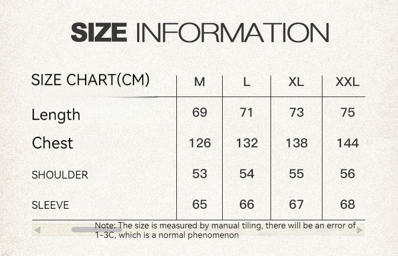 1. Asian sizes are 1 to 2 sizes smaller than European and American people. Choose the larger size if your size between two sizes. Please allow 2-3cm differences due to manual measurement. 2. Please check the size chart carefully before you buy the item, if you don't know how to choose size, please contact our customer service. 3.As you know, the different computers display colors differently, the color of the actual item may vary slightly from the following images.