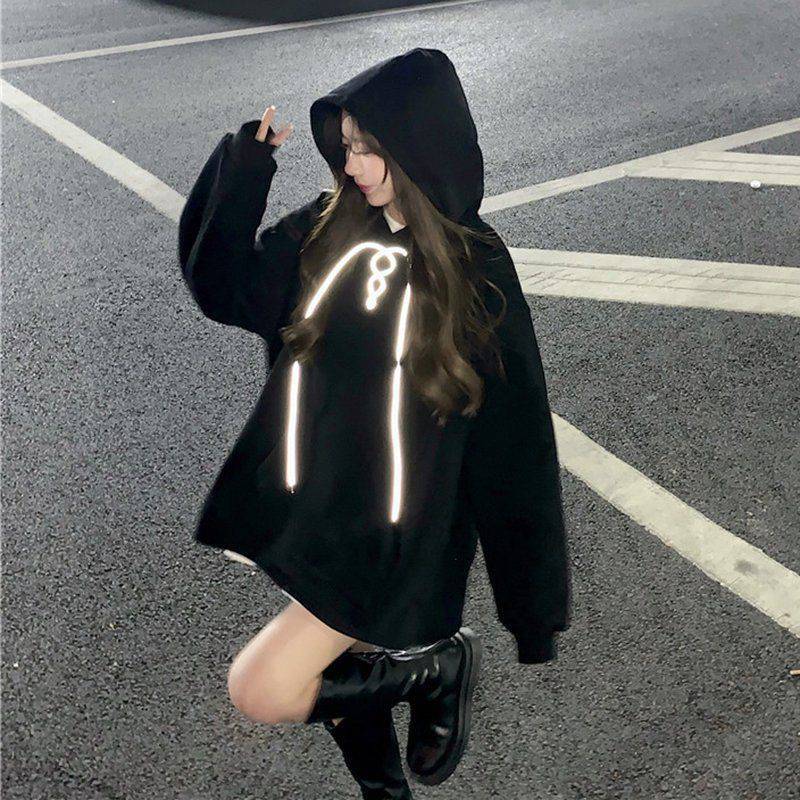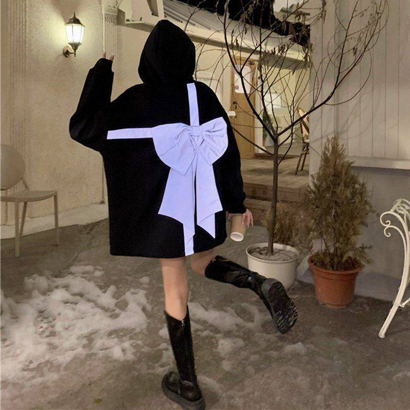 Color black reflective bow + plus velvet thickening, white trendy style