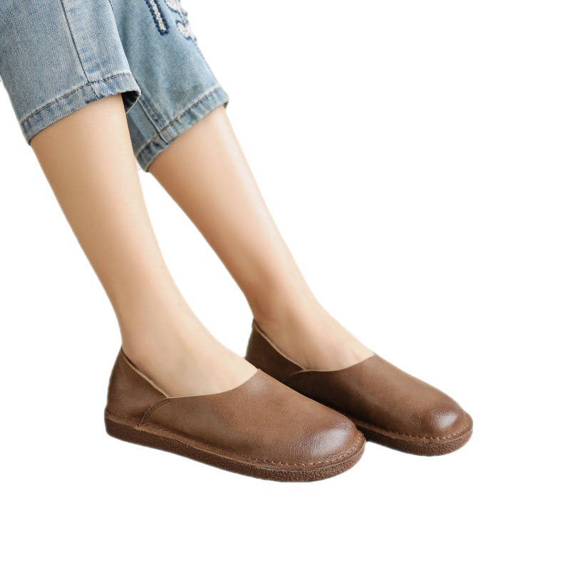Product Information:Style: CasualPopular element: shallow mouthUpper material: genuine leatherPattern: Solid ColorColor: Apricot, coffeeDimension information:Sizes: 35,36,37,38,39,40