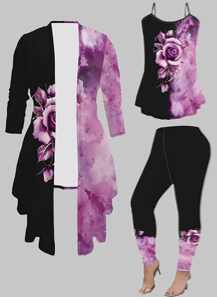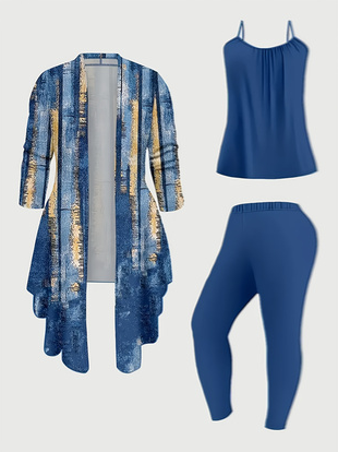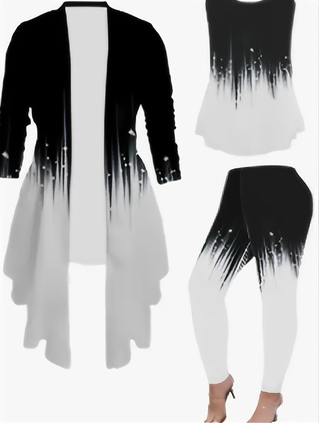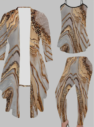 Women's 3 Suits Printed Cardigan Jacket With Soli