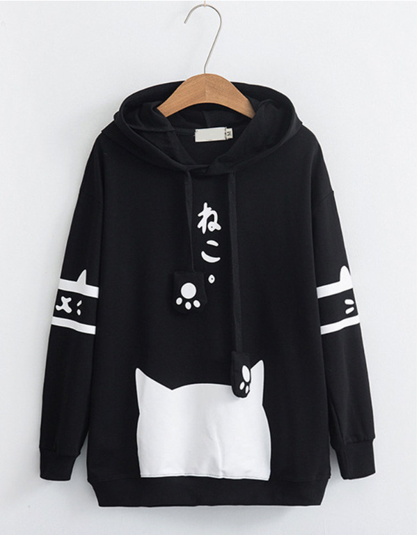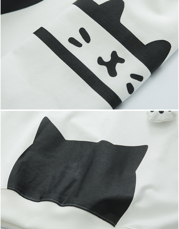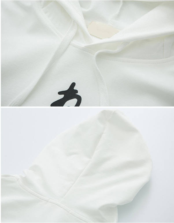 Pattern print style pullover version loose type Combination form One-piece suit Length of clothing Medium length (65cm<cloth length ≤80cm) Sleeve length Long sleeve Sleeve Regular Sleeve Collar Hooded/Hat Collar Thick Normal Craft Printing/Printing Fabric Name Cotton Blend Main Fabric Ingredients Cotton Main fabric component content 81%-90% color white, black Size S, M, L, XL
