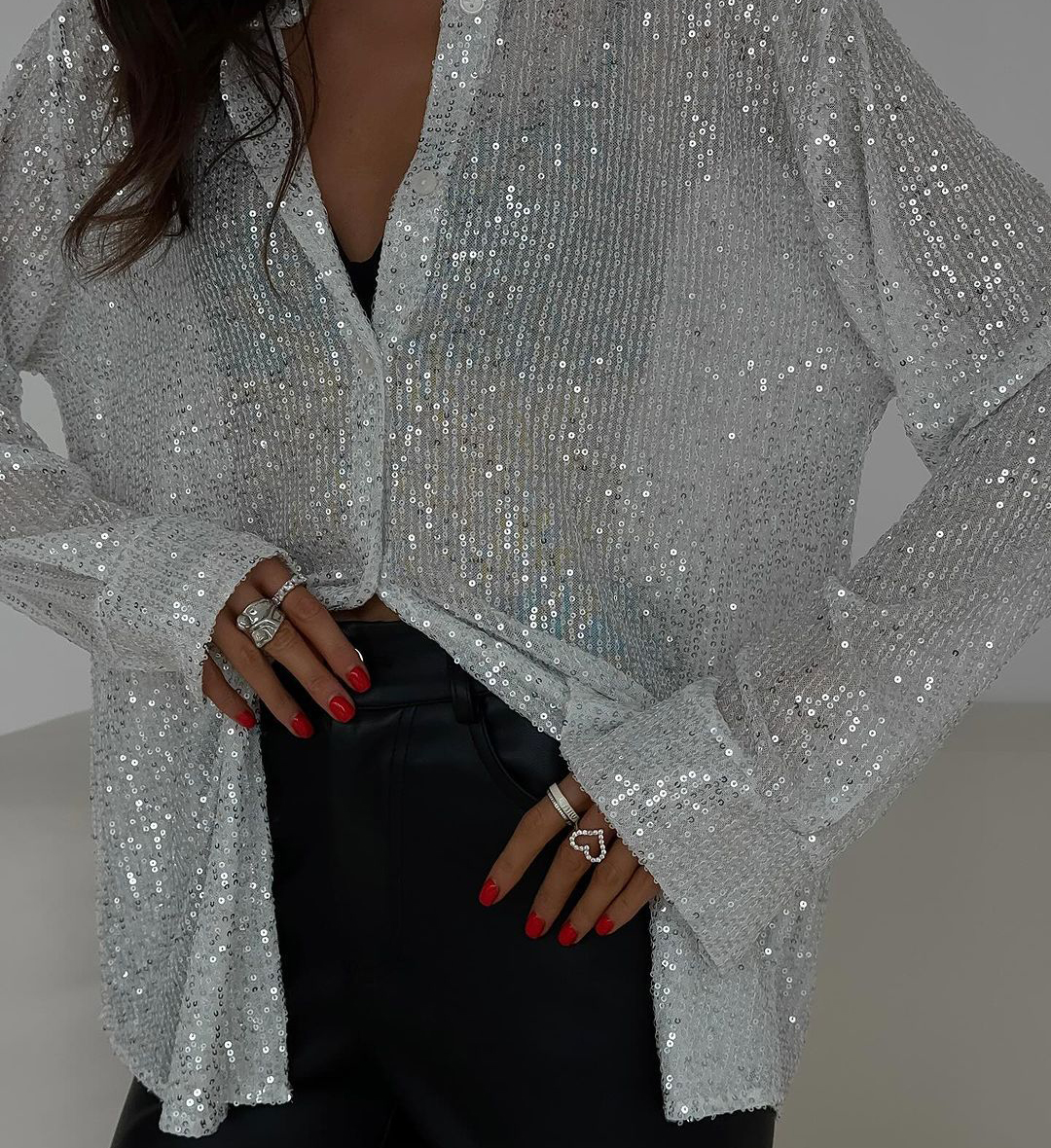 Pattern: Solid color sequinsStyle: CardiganSleeve length: Long sleevesProcess: SplicingVersion: SlimmingLength: Normal typeCollar type: lapel
