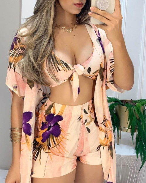 Style: FashionMaterial: polyesterNeckline: Low cutSleeve type: short sleeveLength: Above the knee/shortsMode type: printOpportunity: casual wearPackage includes: top and shooting suit