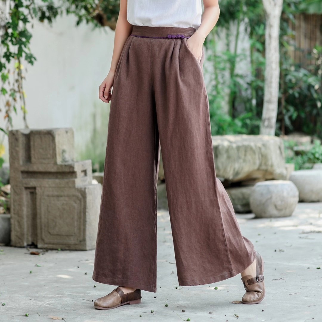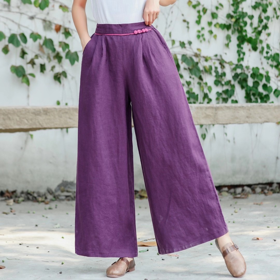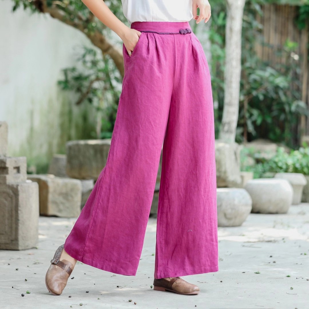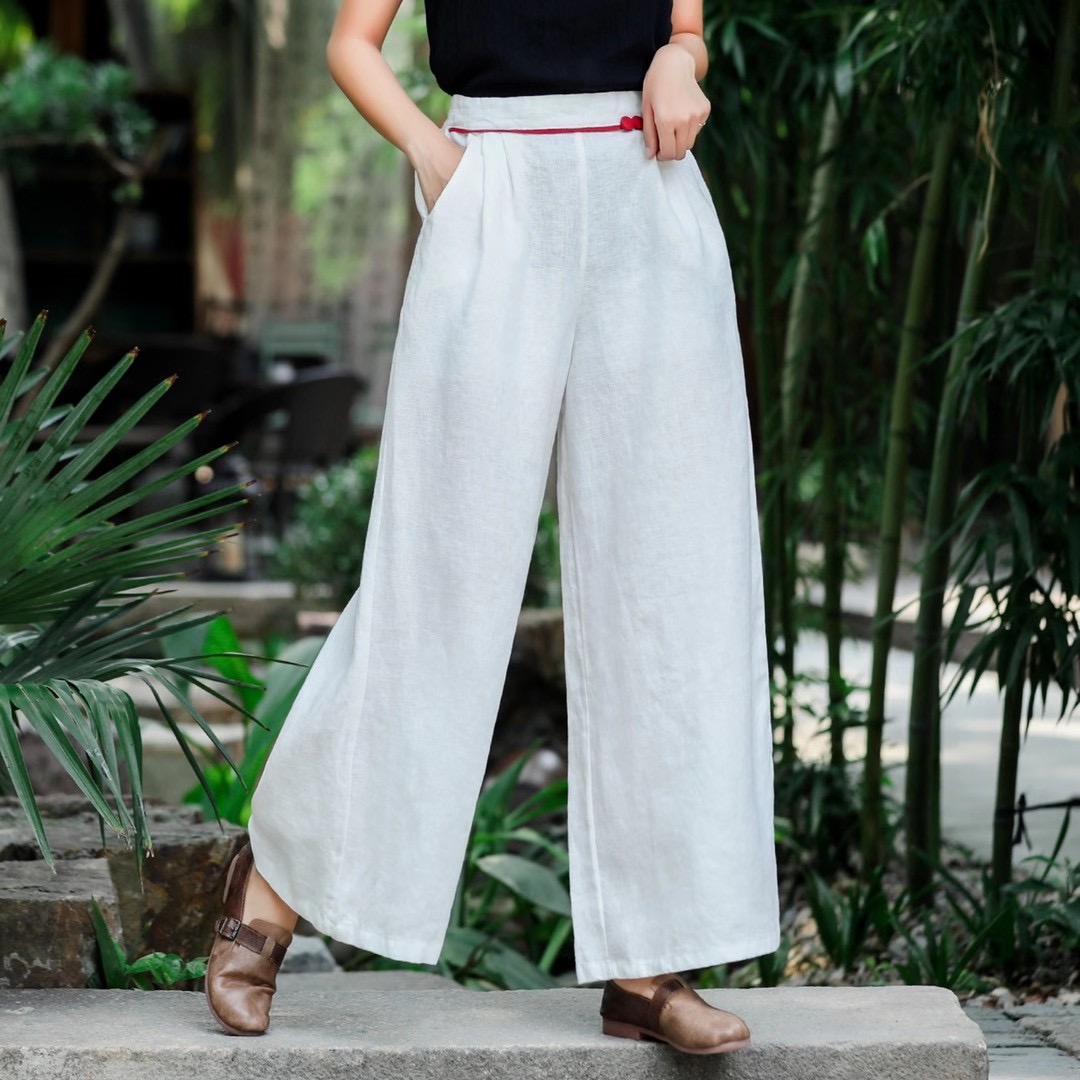 Product material:Material: HempDetails:Size: All sizeFabric: HempStyle: CommuterCommute: RetroWomen's trousers waist height: High waistThickness: ConventionalLength: TrousersWomen's trousers type: Straight pants