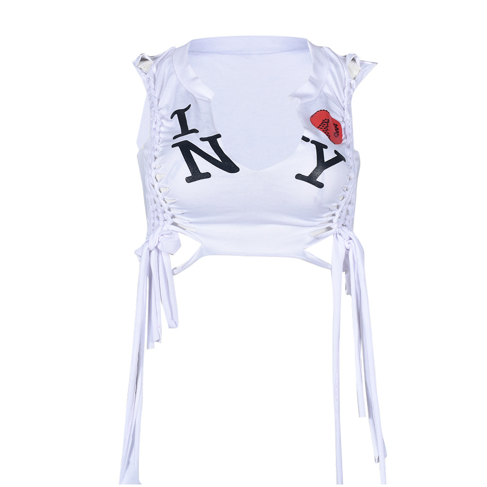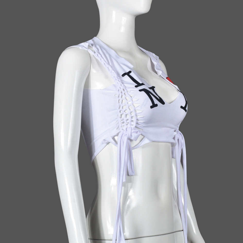 Product information: Color: White Size: S,M,L Version: slim fit Style type: Street hipster Popular elements: lace-up hollow-out navel Style: pullover Fabric name: CVC Sleeve type: sleeveless Main fabric composition: Polyester