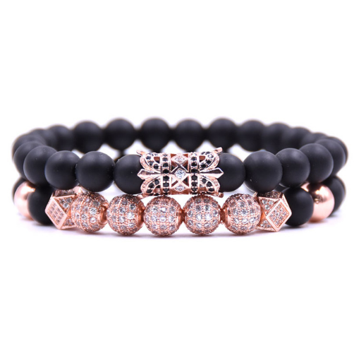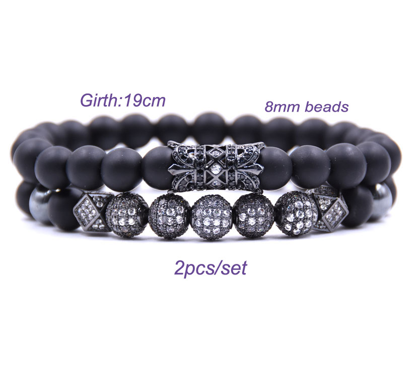 Liuling column hollow tube micro-inlaid zircon ball black matte set bracelet