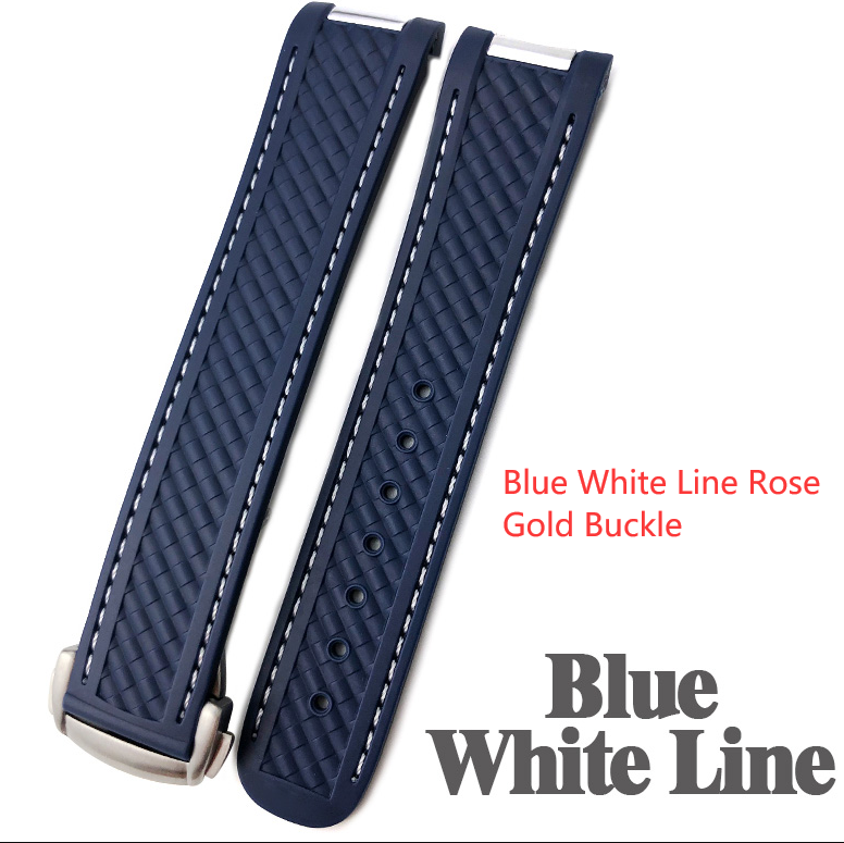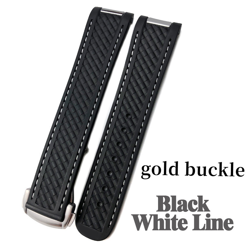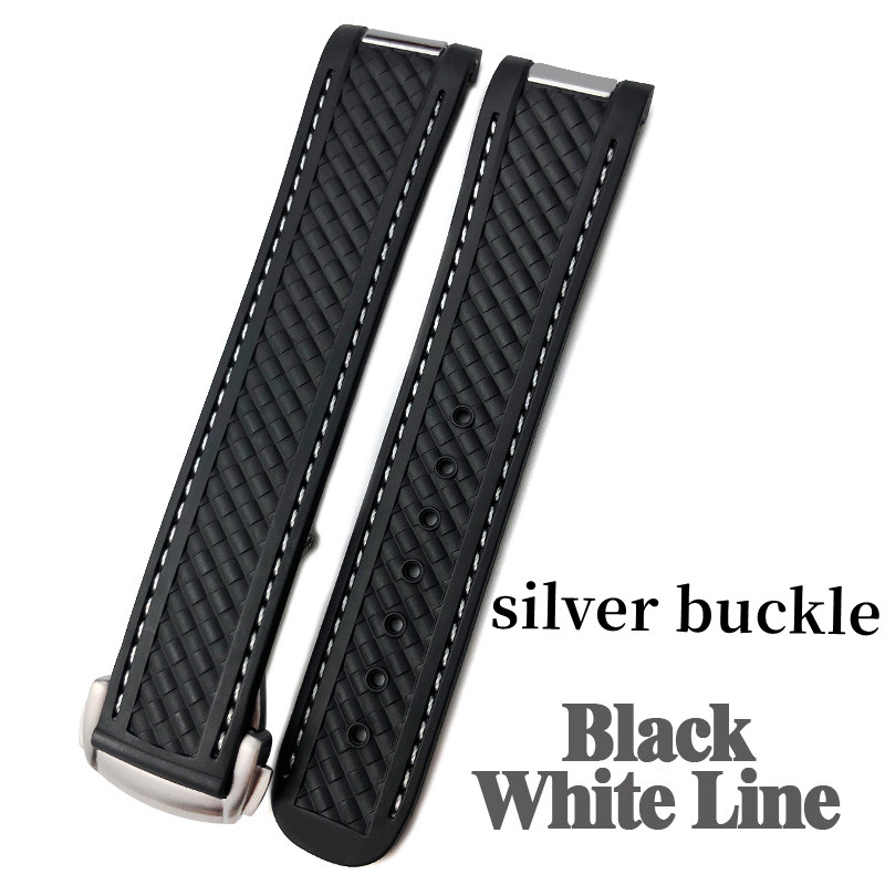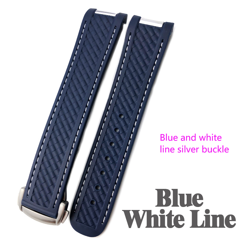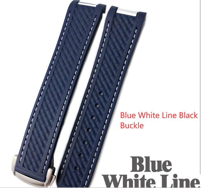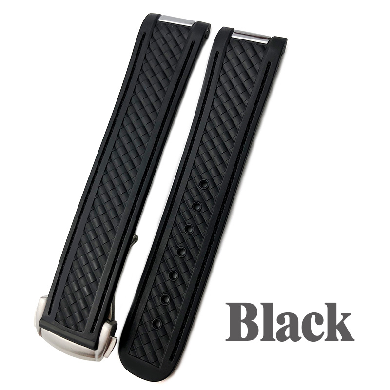 Strap material: rubberColor: black, red, gray, green, blueClasp: Frosted pin buckleThickness: moderateLuster: MatteSize strap: 20mm