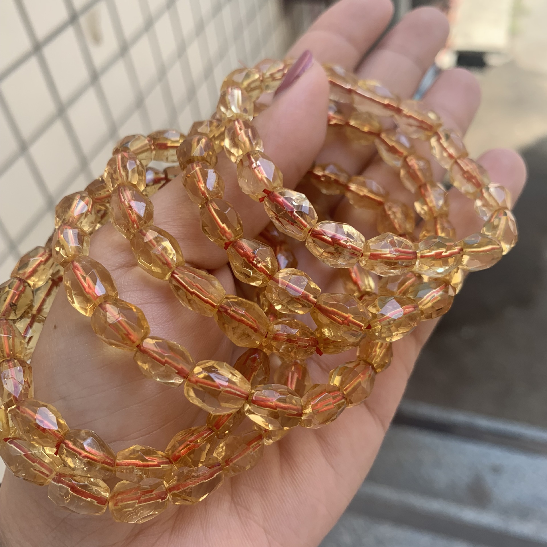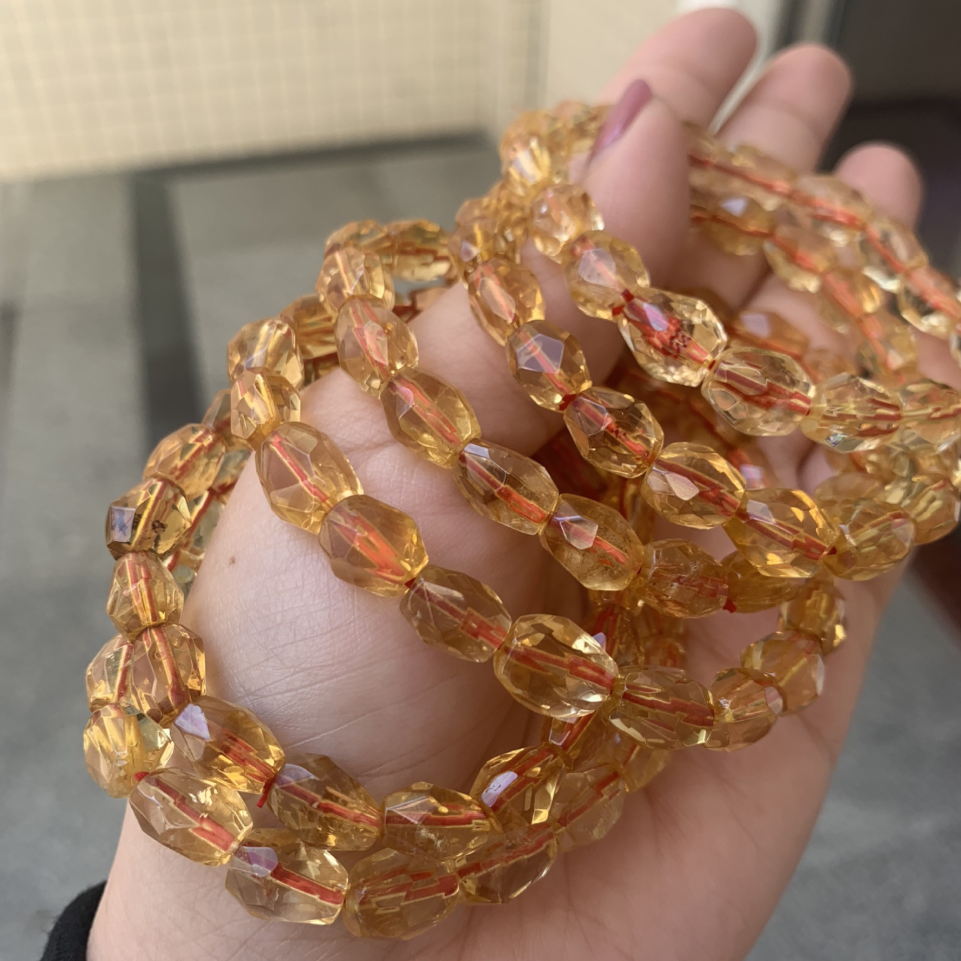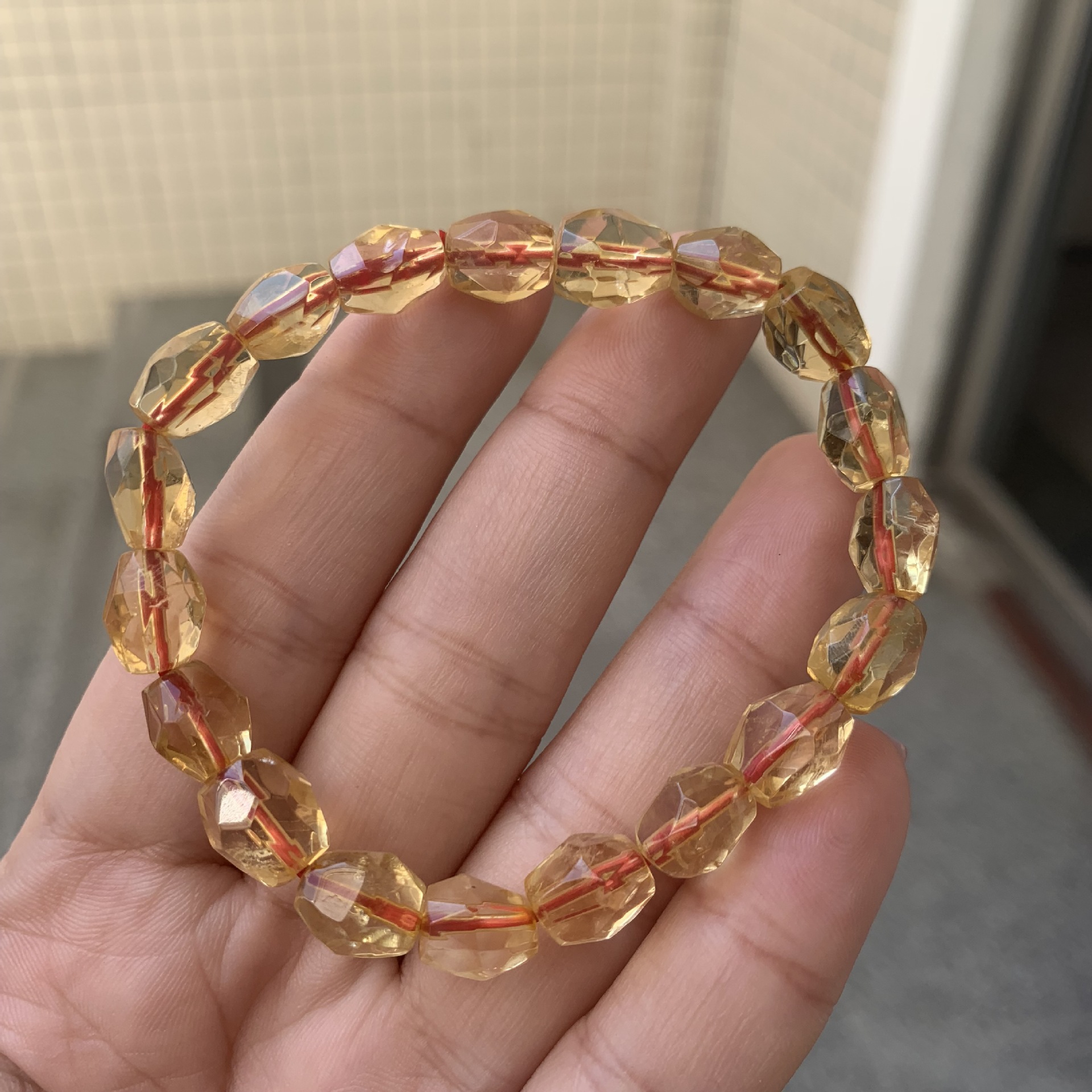 Product Details: Material: CrystalType: BraceletStyle: Women'sCrystal type: CitrineShape: rhombusColor: Citrine faceted bracelet 8*10Popular elements: retroPackage Contents:Crystal bracelet X1