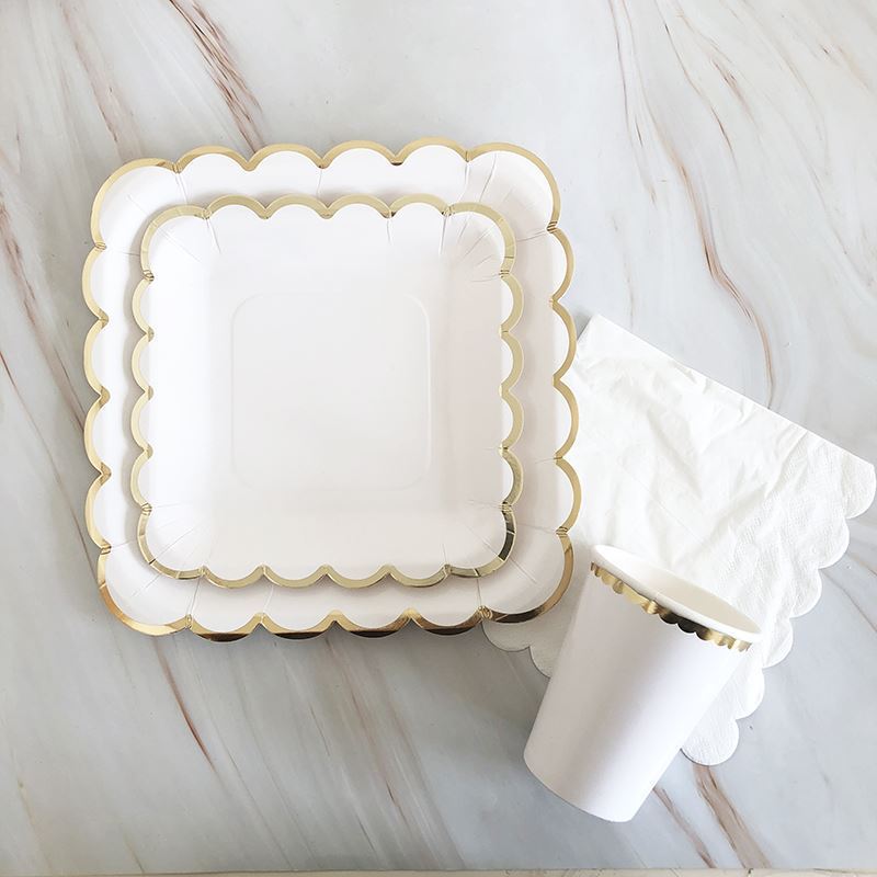 8style: 8 9-inch 23cm square plates with gilt white