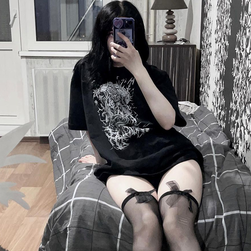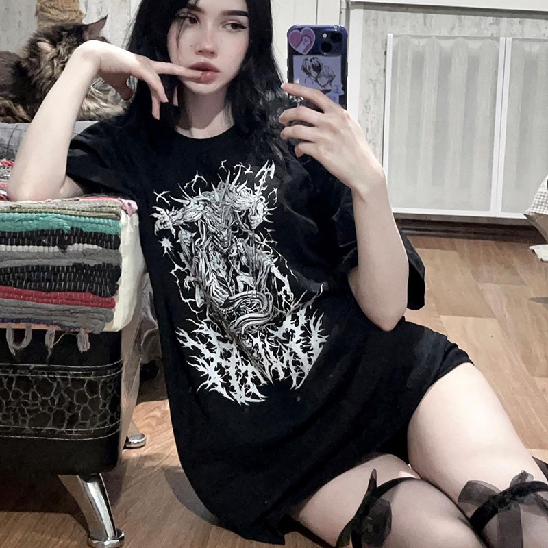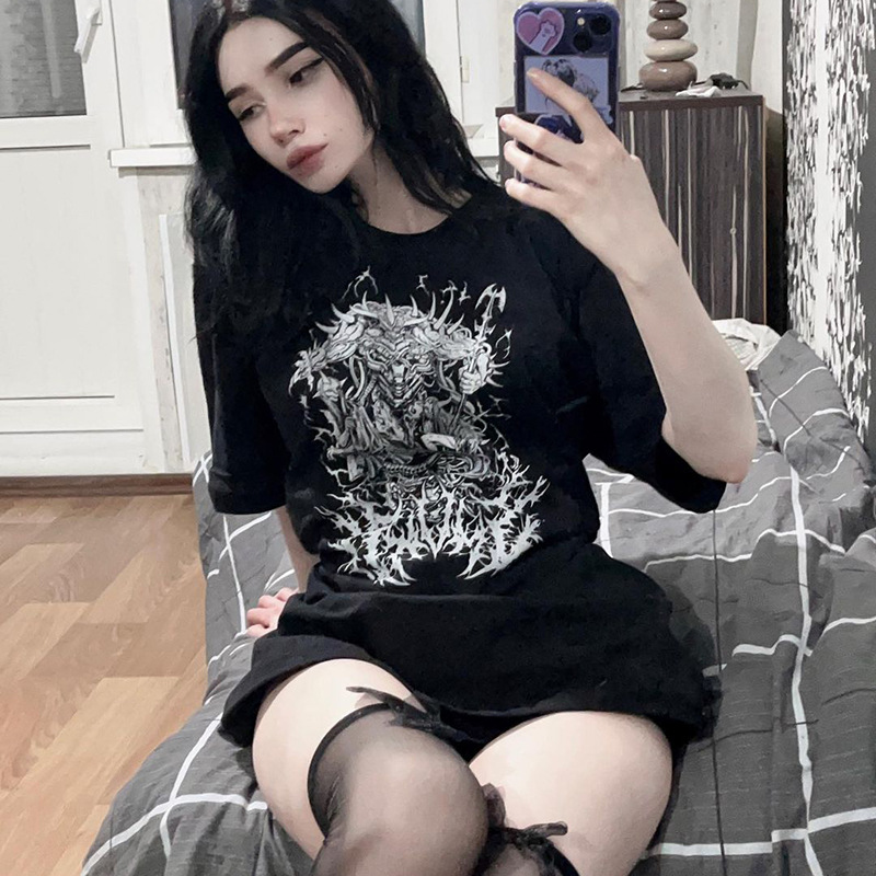 Female Summer Niche Design Abstract Printed Round Neck Top Shirt