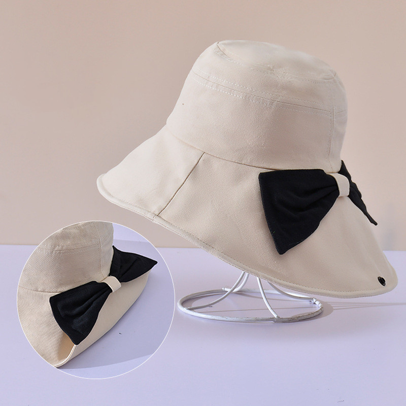 Specification:Name:Casual fisherman hatPopular elements: BowPattern : MonochromeSuitable season: Summer, spring, autumnColor: Black, pink, brick red, turmeric, beige, khakiPacking list: