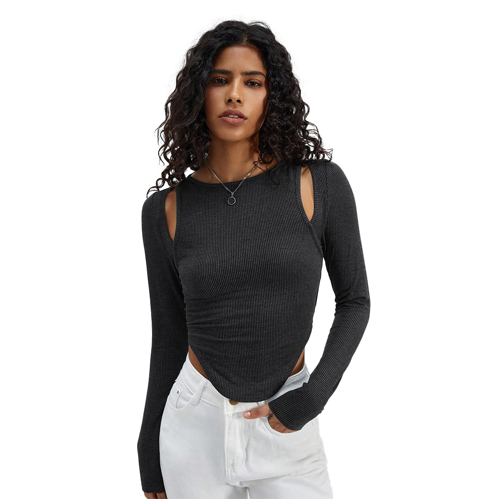 Product information: Pattern: solid color Color: Gray Size: S,M,L,XL Style: slim fit Fabric name: knitted Sleeve length: long sleeve Style: sexy style