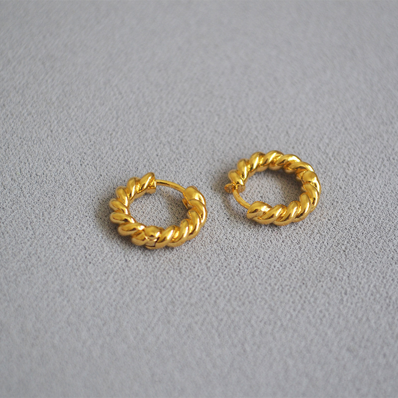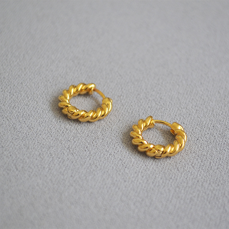 Brass gilded twist round earrings