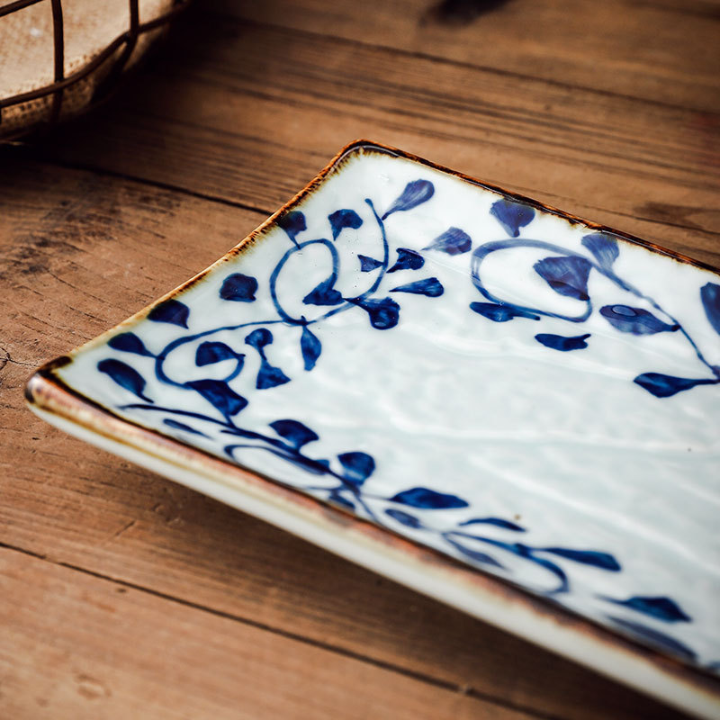 Product category: trayMaterial: porcelainApplicable population: generalPattern: FlowersShape: SquareMicrowave oven: availableSurface technology: underglaze color