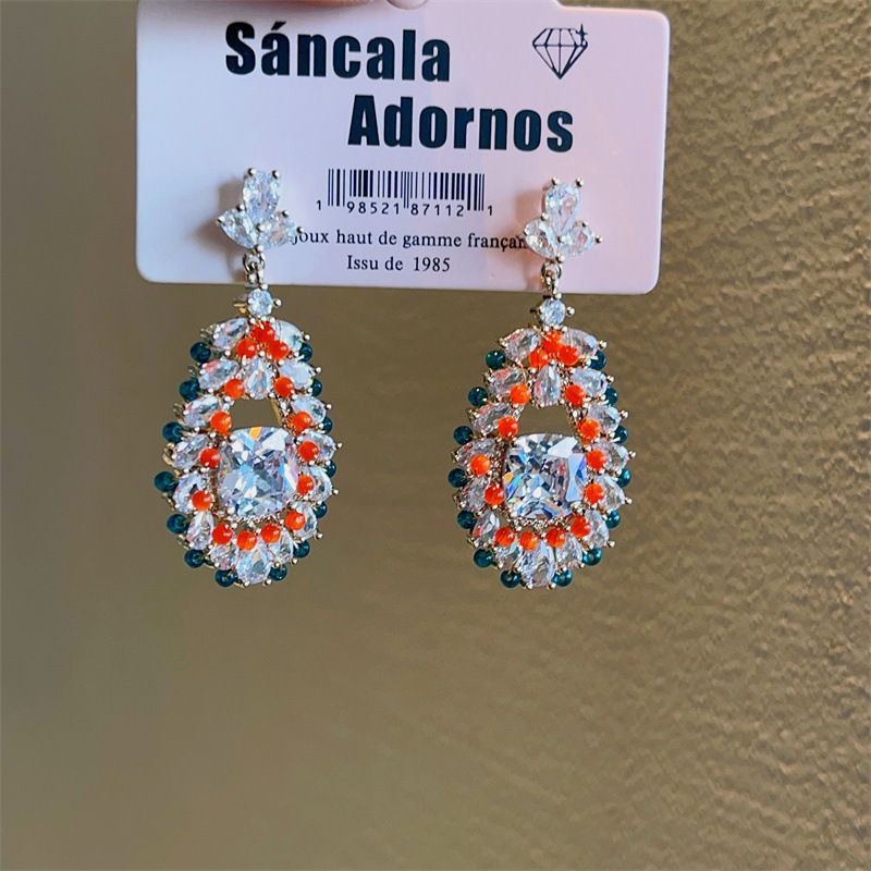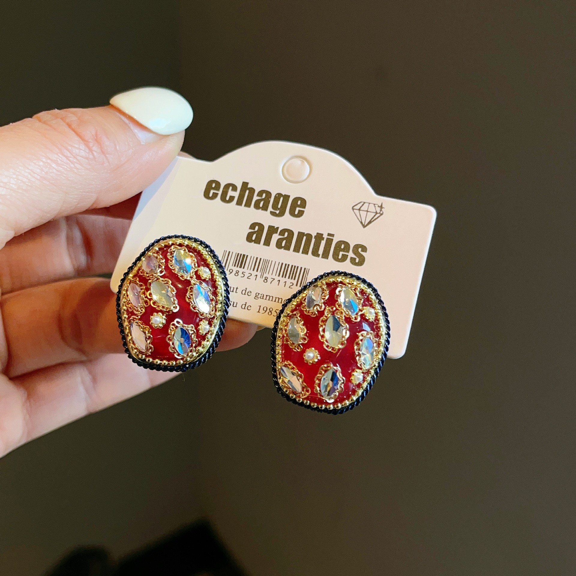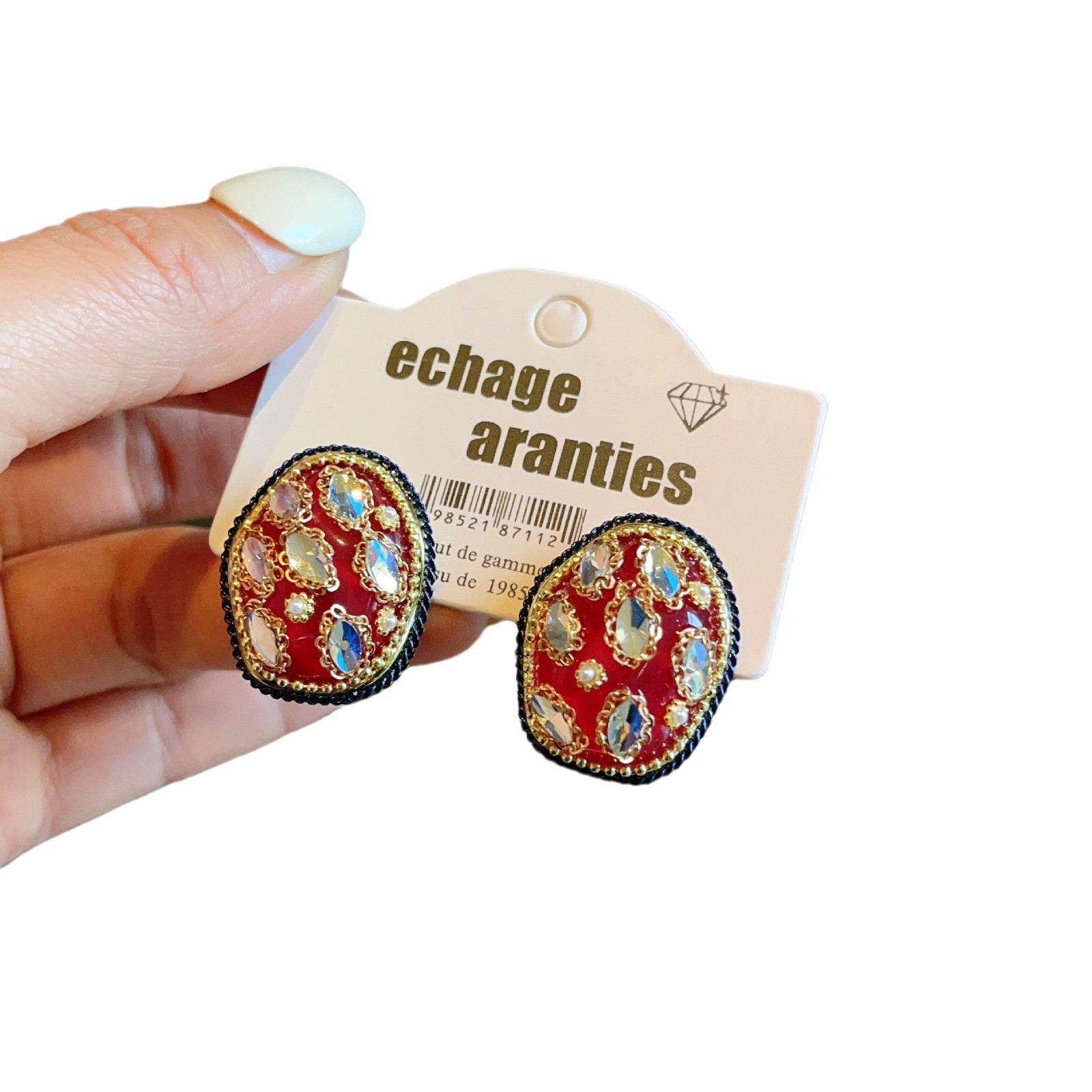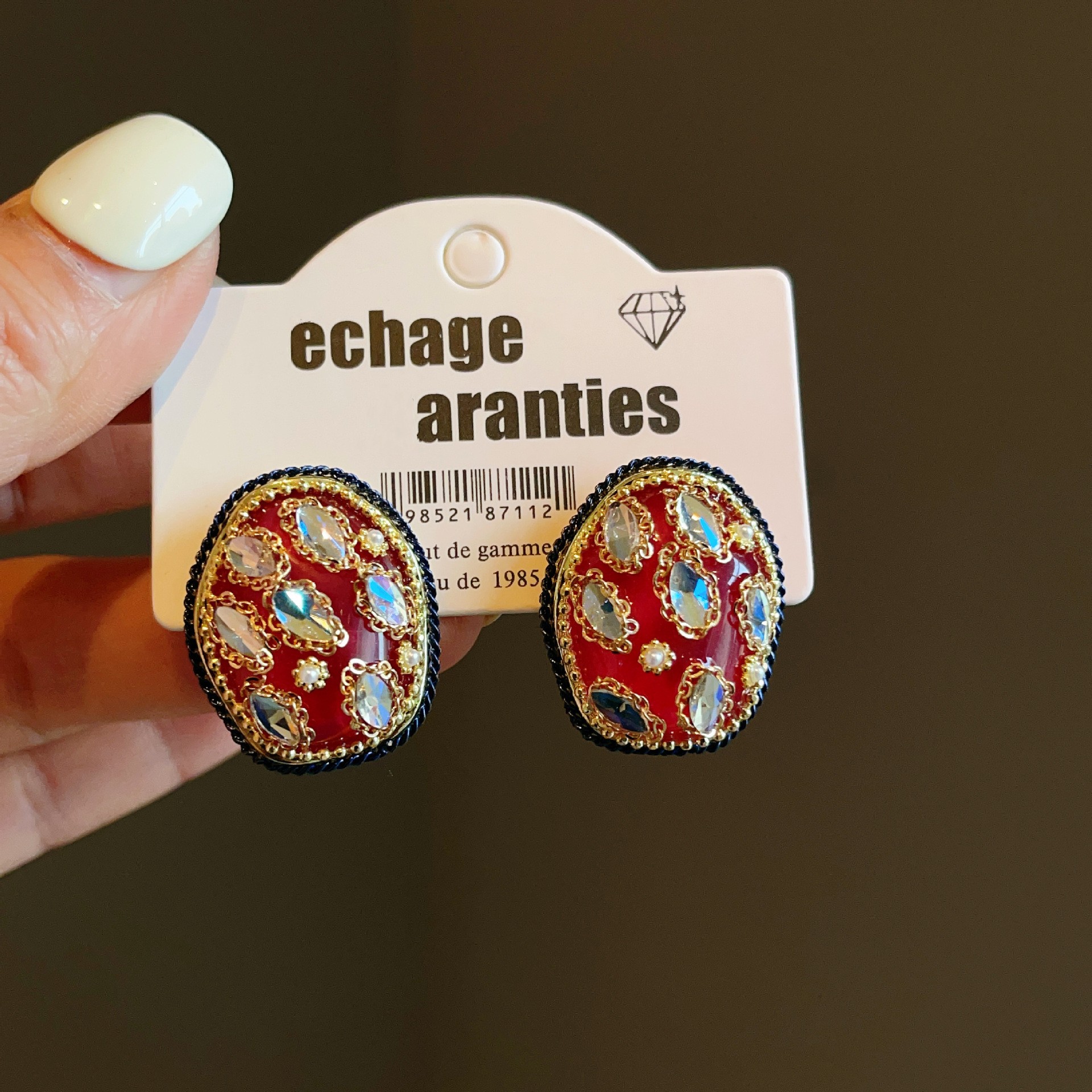 Product information:Processing Technology: manual Color: E0291 agate red handmade inlaid heavy industry stud earrings, E0948 Green heavy industry gem, E0976 orange green geometric gem Applicable population: Female Material: artificial crystal