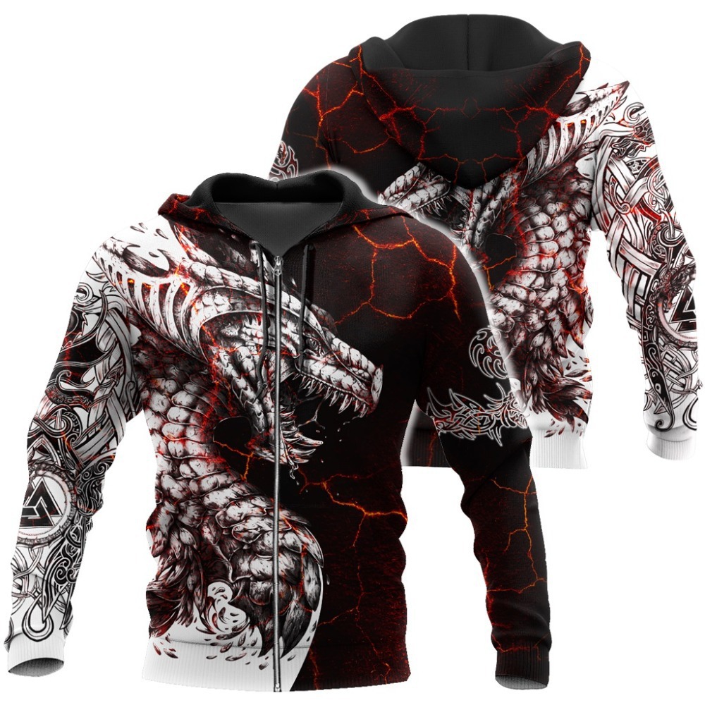 Color: black and white tattoo dragon zipper, black and white tattoo dragon head, black and white tattoo dragon round neck