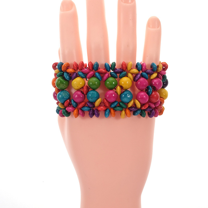 Woven Multilayer Hollow Wooden Bead Bracelet Bangle
