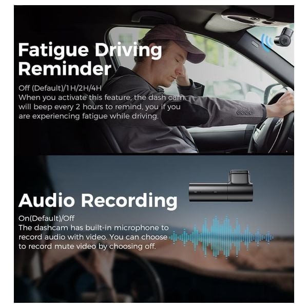 • وضع التوقف (Parking Mode): يوفر مراقبة مستمرة للسيارة وهي متوقفة (يتطلب وصلة هاردوير Type-C تُباع منفصلة).