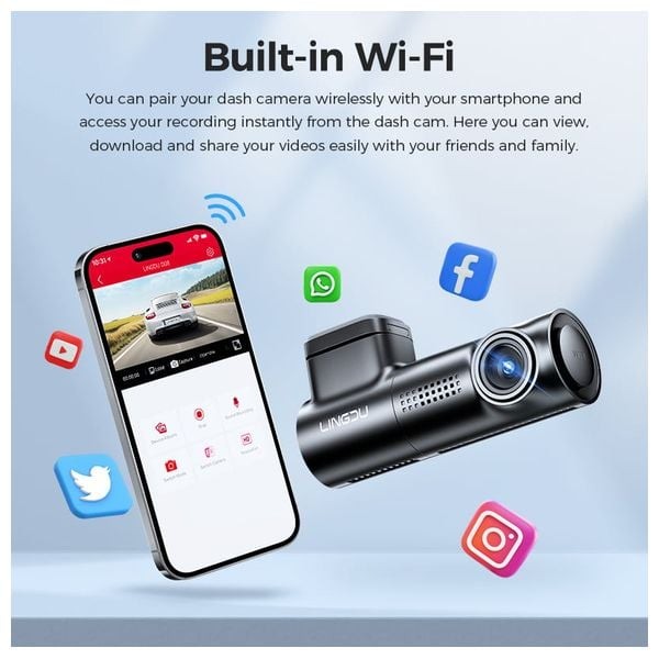 تعد كاميرا الداش كام Lingdu D08 (قناة واحدة) خياراً مدمجاً وعصرياً يسجل الفيديو بدقة 1296P HD، وتتميز بدعم تقنية الـ Wi-Fi المدمجة لتسهيل إدارة الملفات عبر تطبيق الهاتف المحمول.