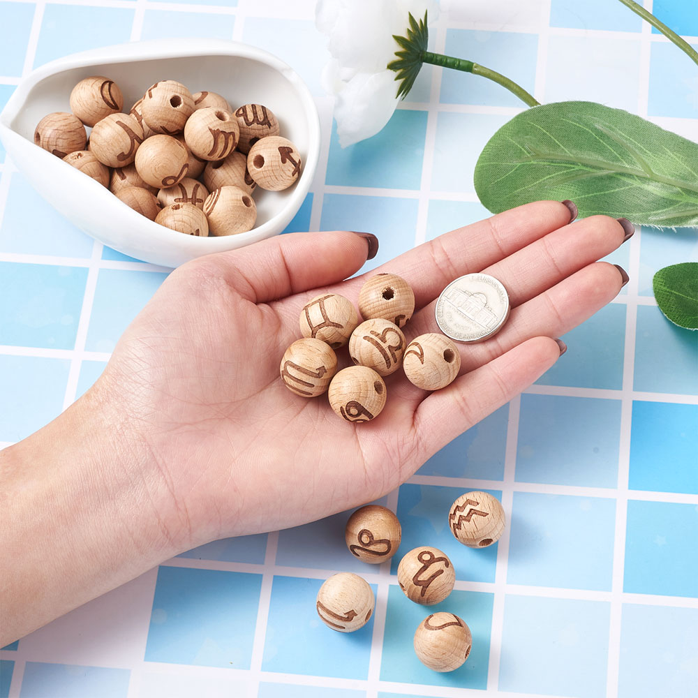 16-20mm Beech Wood 12 Constellation Beads