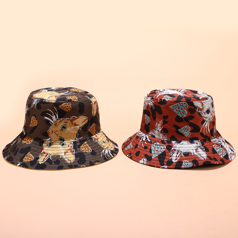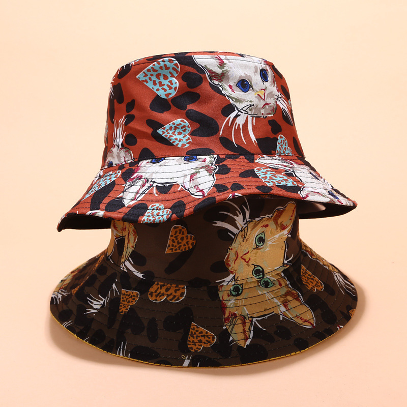 Cat print foldable double-sided sun hat