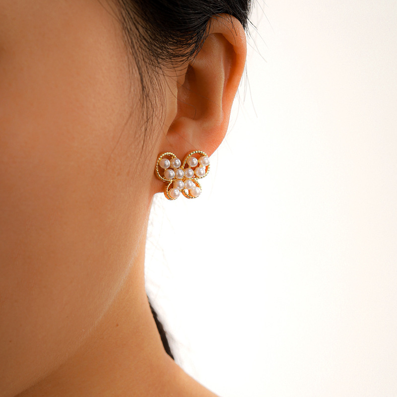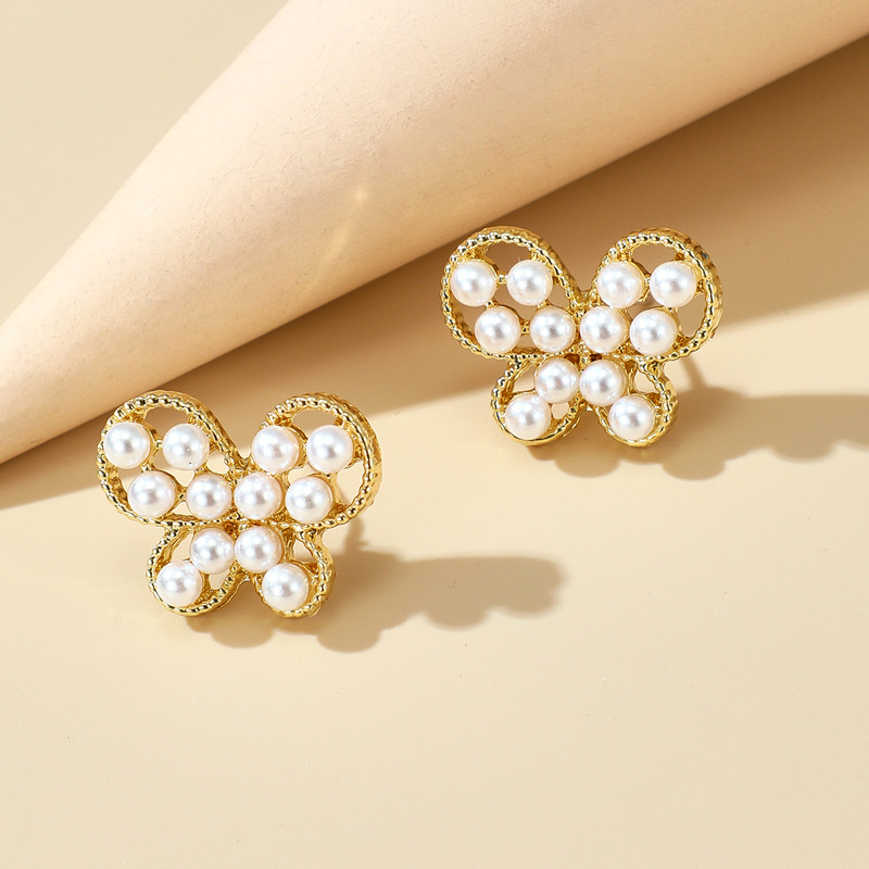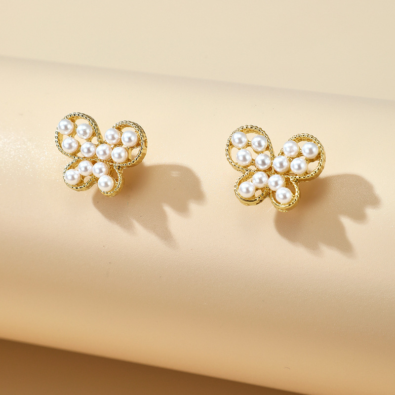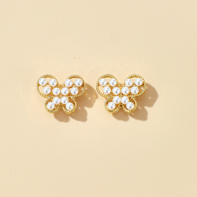 Style: unisexModeling: geometricTreatment process: electroplatingPackaging: Individually packedStyle: cute/romanticMaterial: PearlPearl type: Simulated pearlModel: Butterfly earrings
