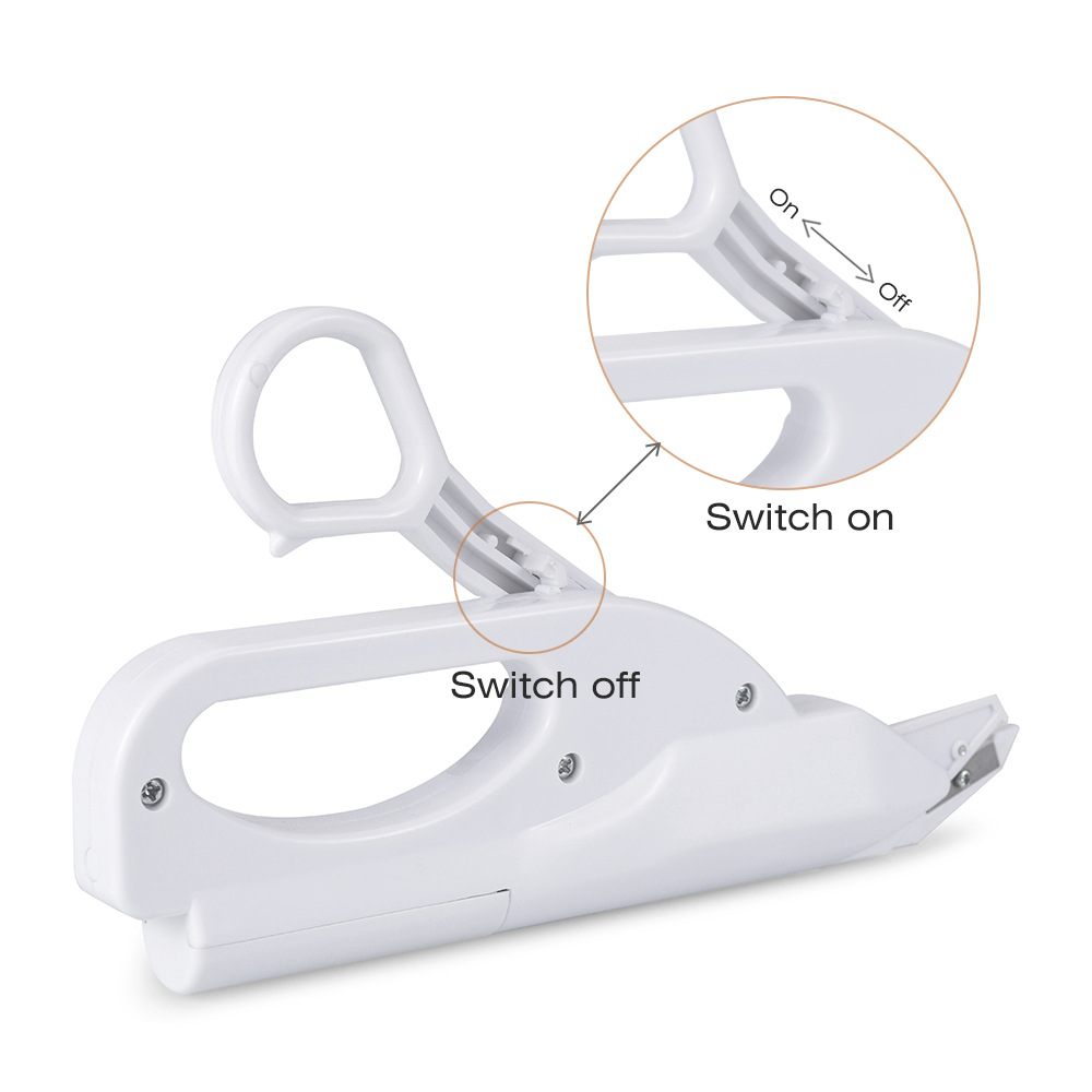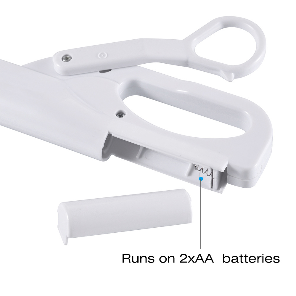 1. Battery powered (2 AA batteries - not included)2. Made of ABS plasticQuilting machines and craftsmen will find this kind of electric scissors very useful. Perfect for everyday projects at home!4. Gift box size: 23 * 4 * 13.2 cm