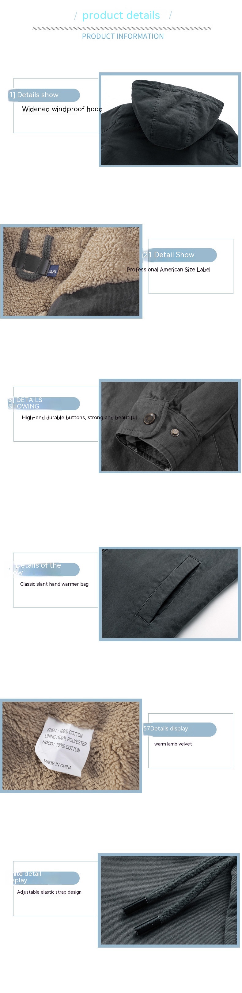 Color: khaki, gray, black, green, blue, brown