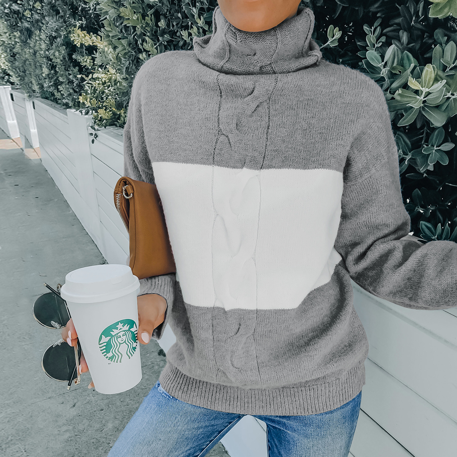 Color: coffee, light gray, fog blue