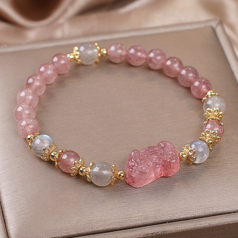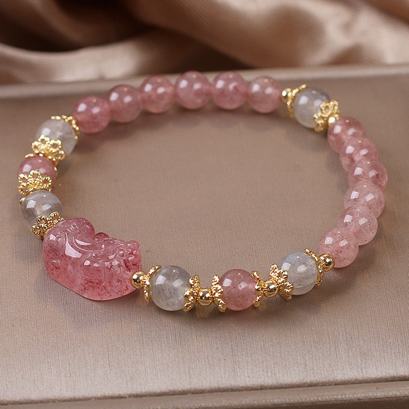 Attracting Male Transfer Natural Strawberry Quartz Pi Xiu Bracelet