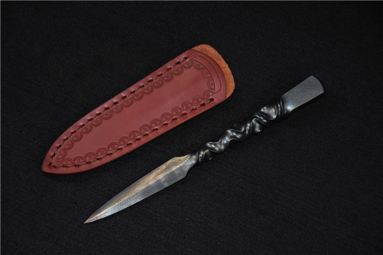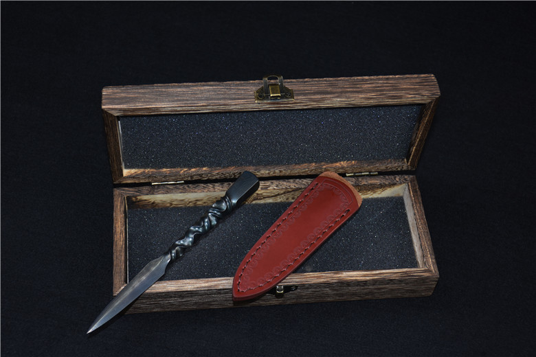 Full length: 173mmBlade length: 67mmBlade width: 15mmMaterial: One-piece patterned steelPacking list: leather case, high-grade wooden box, knife