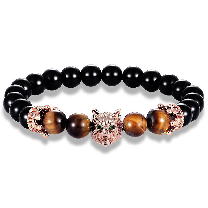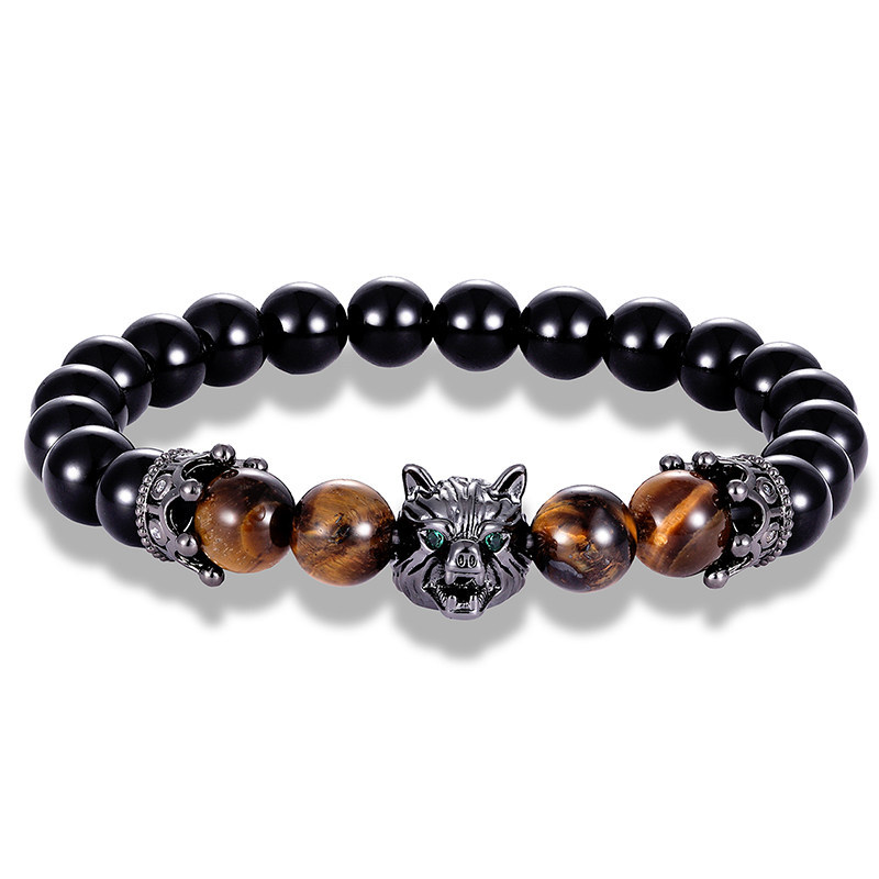 Product name: wolf head braceletProduct material: micro inlay + tiger's eye stone + bright stoneProduct size: length 19cmProduct packaging: white OPP independent packaging