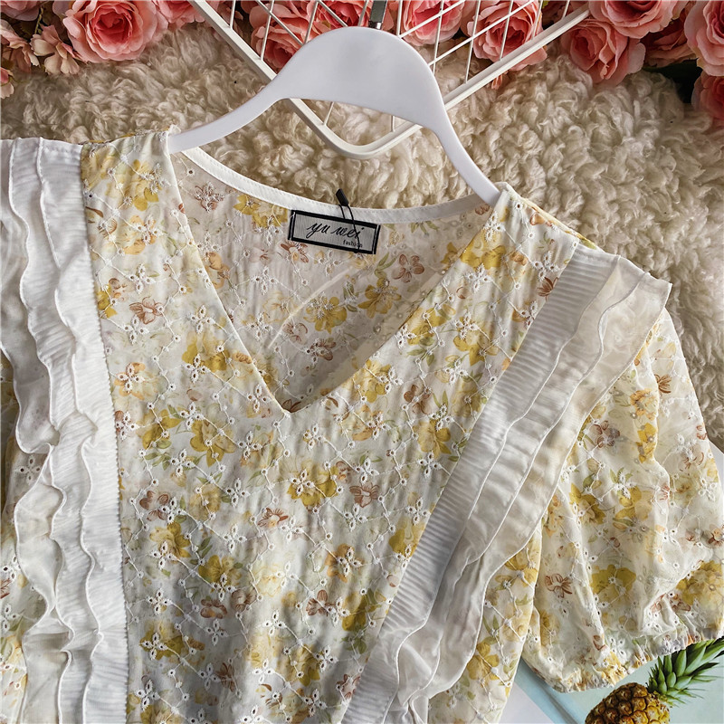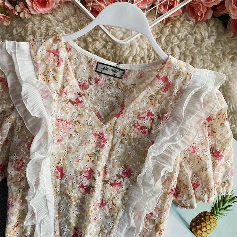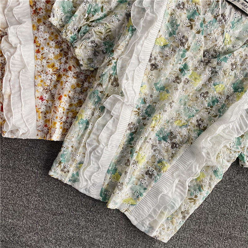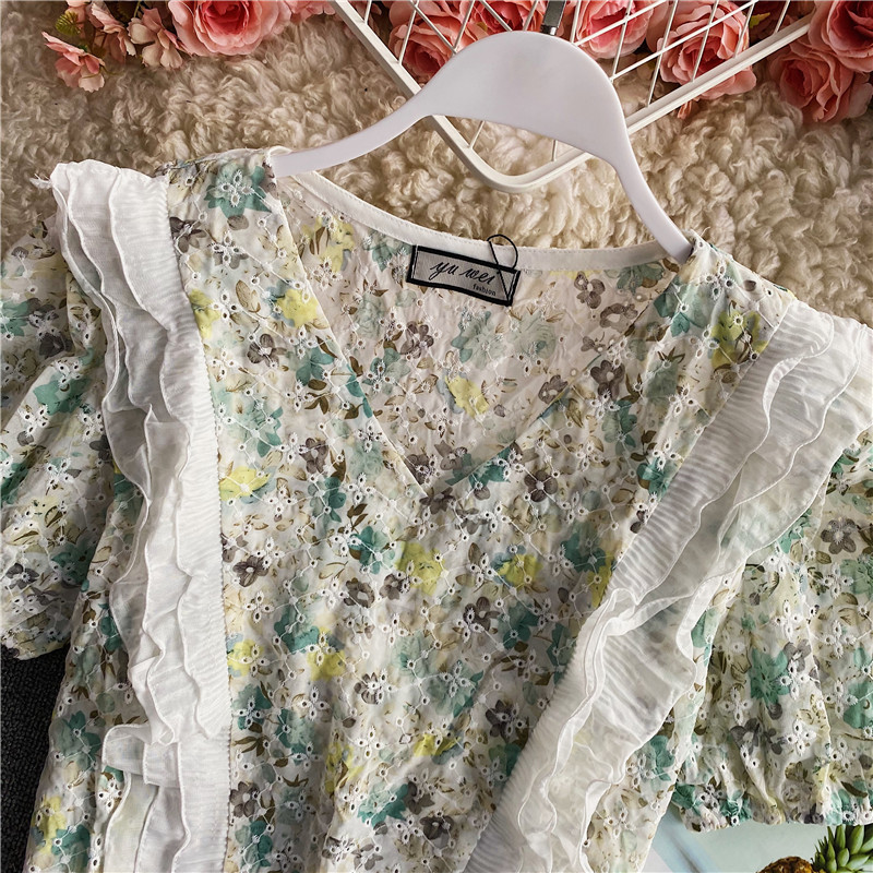 Style details: lotus leaf, hollow, embroidery, stitching, printing