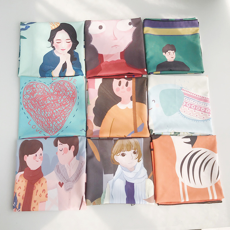 Color: Crown girl, scooter girl, curly girl, straw hat girl, dolphin girl, six alpacas, fallen leaves girl, saddle, freckles girl, umbrella girl and dog, shoe girl, a couple, a boy, an elephant, A zebra, love and cat, white black dots, green background floral, white background purple leopard print