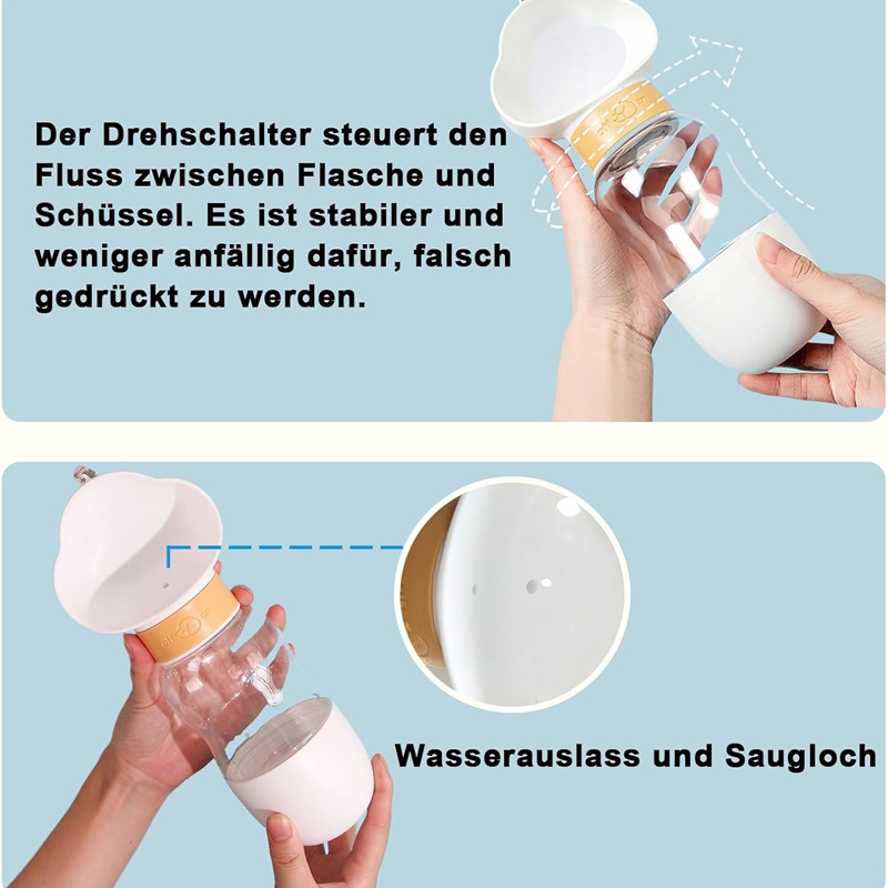 Easy to use: Turn on the rotary switch to add water and turn off the rotary switch to stop water from entering the bowl. Store pet food in the food container at the bottom for easy access to feed your pet.