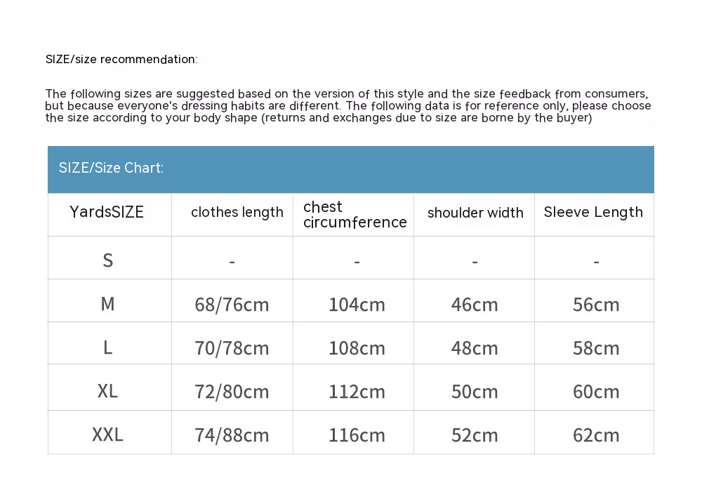 1. Asian sizes are 1 to 2 sizes smaller than European and American people. Choose the larger size if your size between two sizes. Please allow 2-3cm differences due to manual measurement. 2. Please check the size chart carefully before you buy the item, if you don't know how to choose size, please contact our customer service. 3.As you know, the different computers display colors differently, the color of the actual item may vary slightly from the following images.