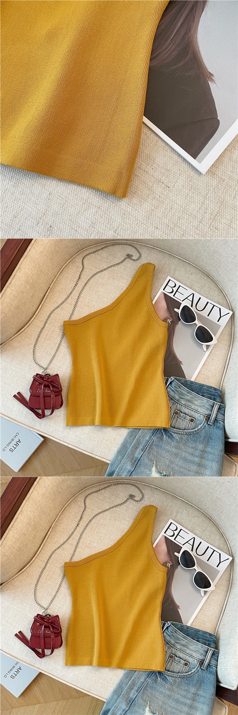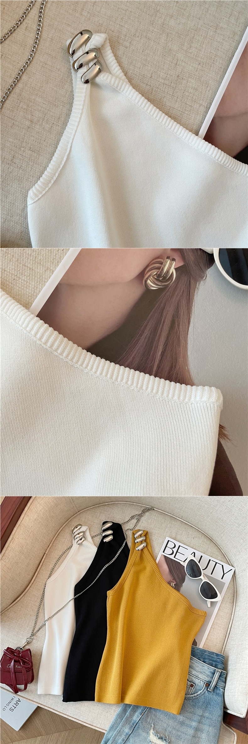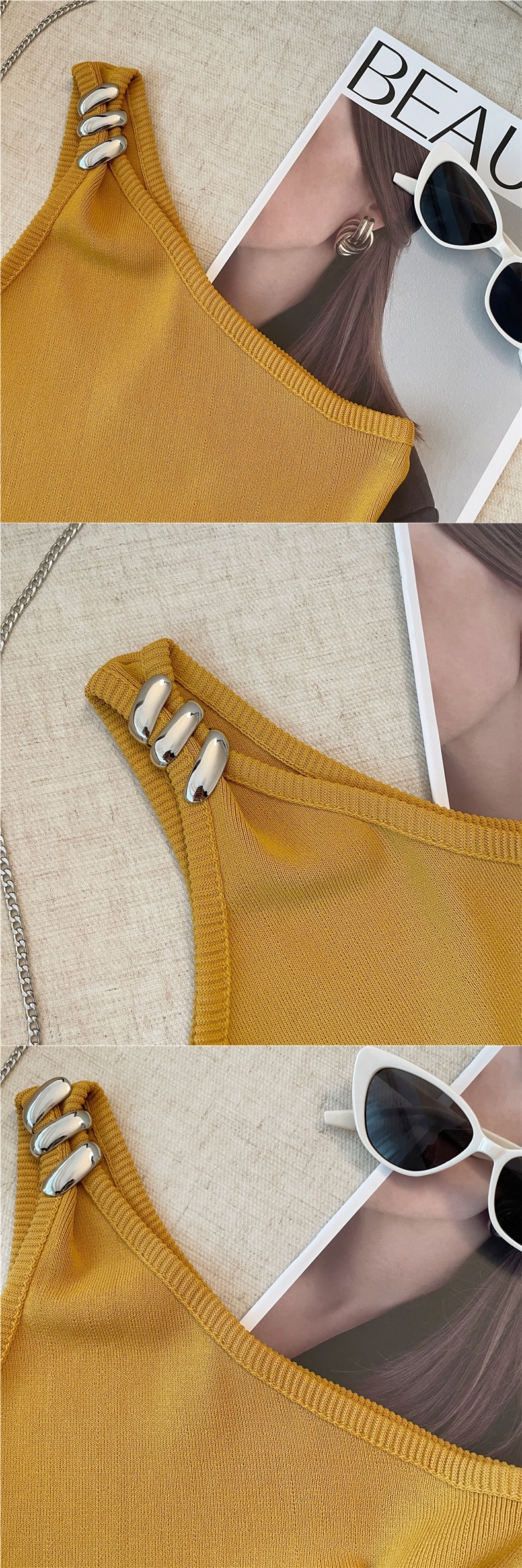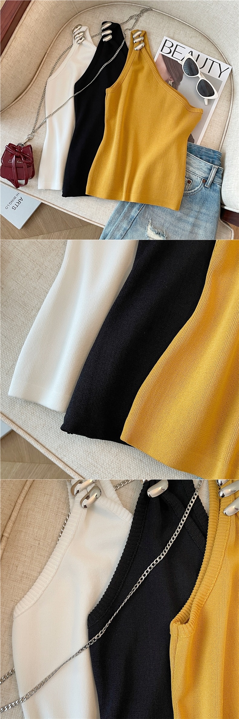 Product information:Pattern: solid colorFabric name: ChenilleColor: Goose yellow, creamy-white, BlackMain fabric composition: SpandexSize: S,M,LVersion: slim fitStyle type: private clothing socialiteStyle: adult lady like woman style
