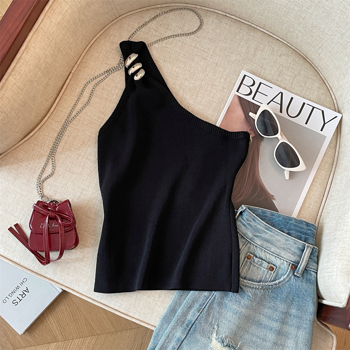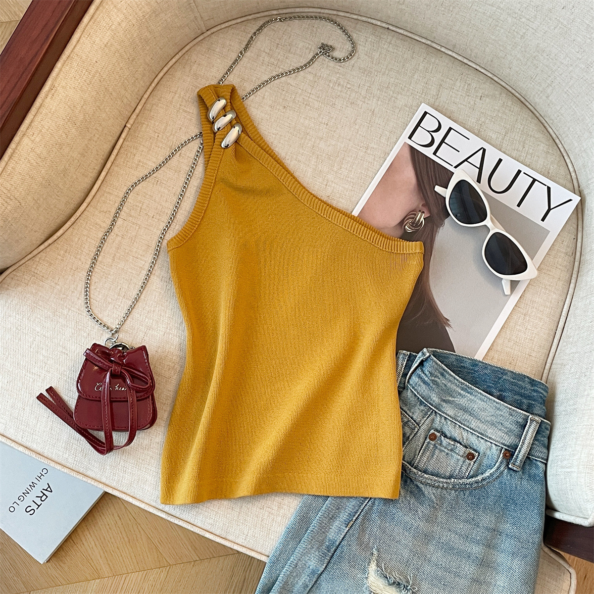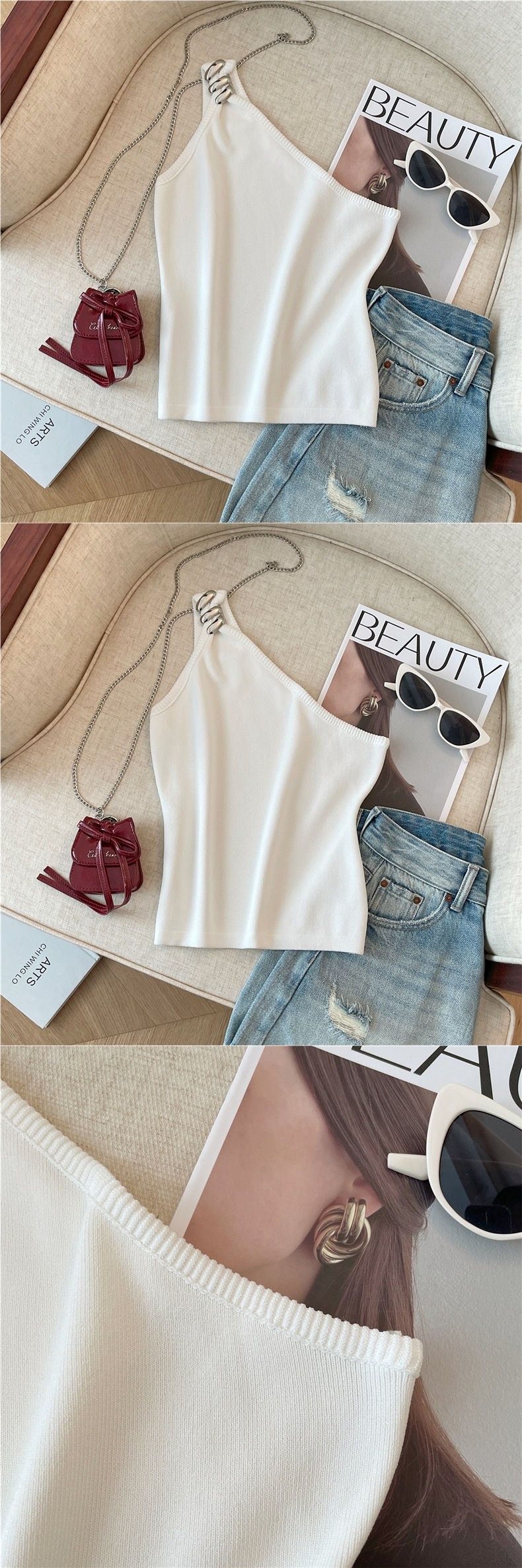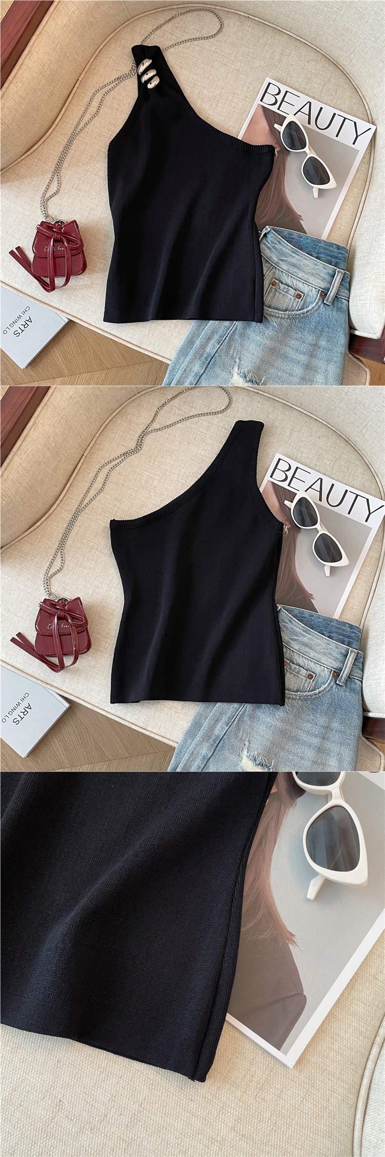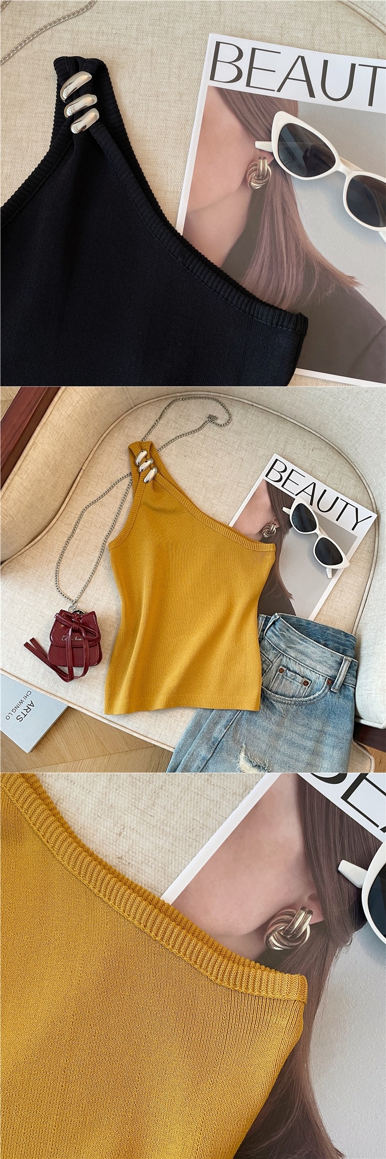 Product information:Pattern: solid colorFabric name: ChenilleColor: Goose yellow, creamy-white, BlackMain fabric composition: SpandexSize: S,M,LVersion: slim fitStyle type: private clothing socialiteStyle: adult lady like woman style