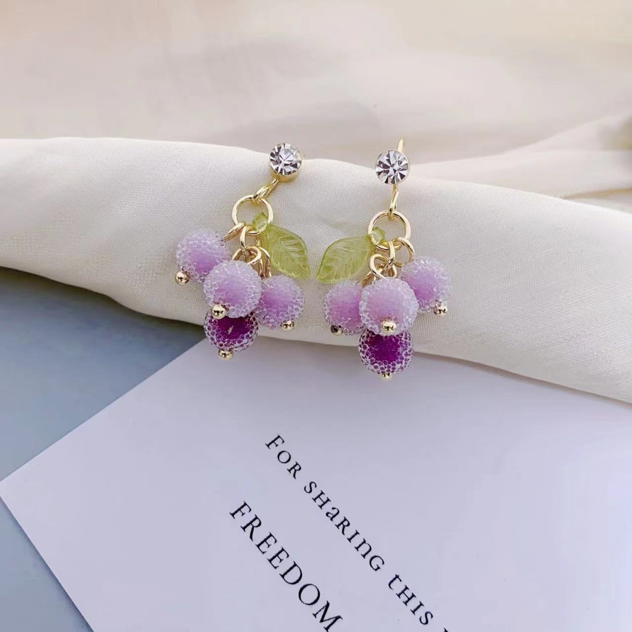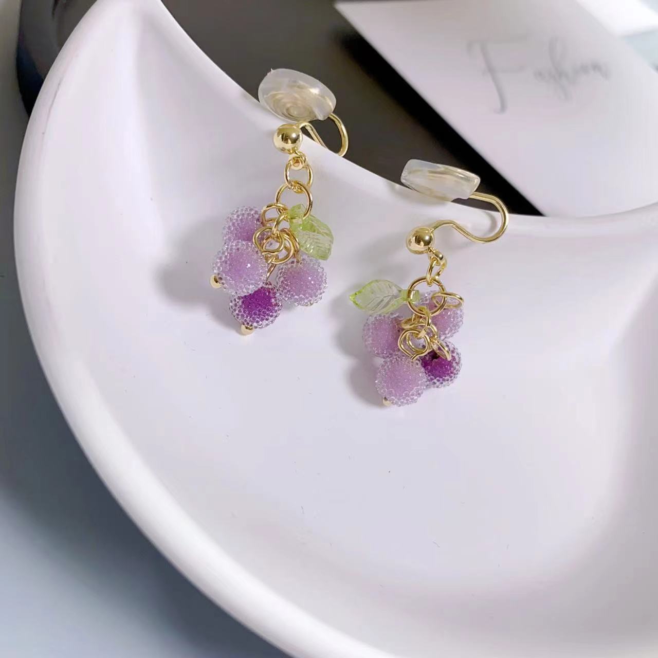 Product information:Color: ear hook, sterling silver needle, mosquito coil ear clipApplicable people: womenMaterial: Plastic/resinShape: GeometricPopular elements: GrapesStyle: Cute