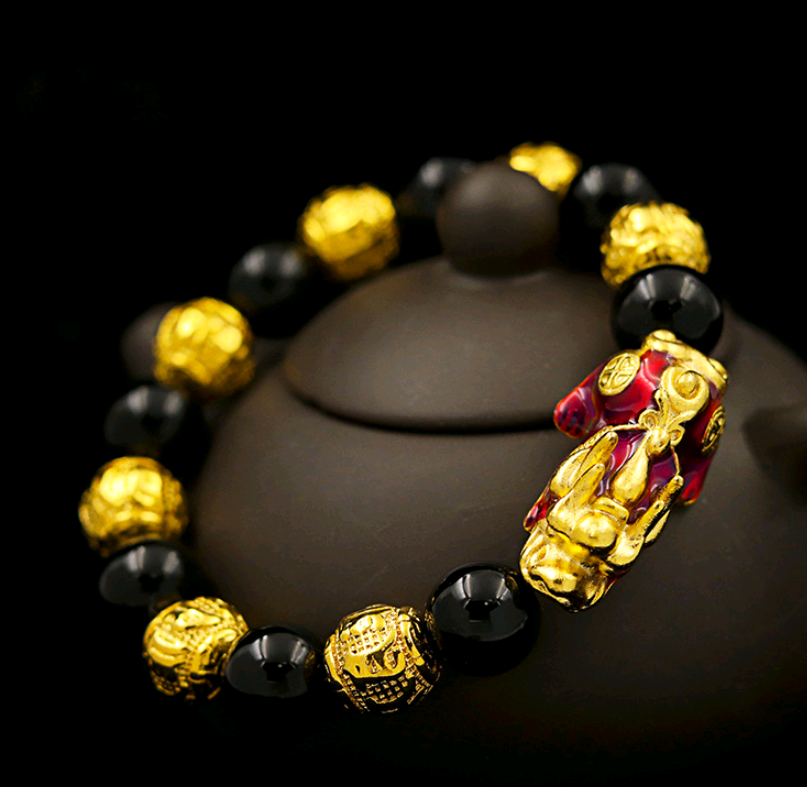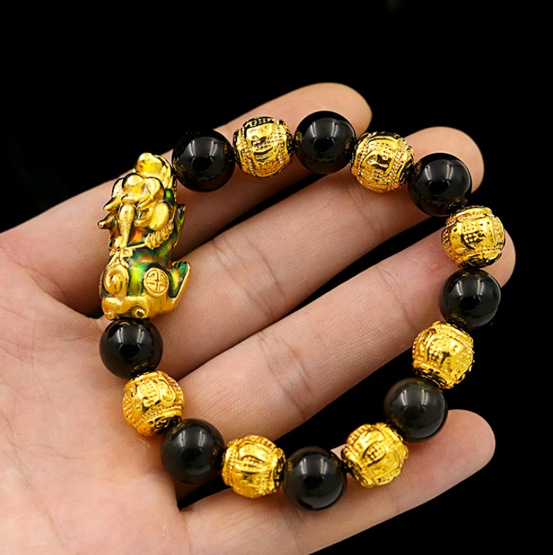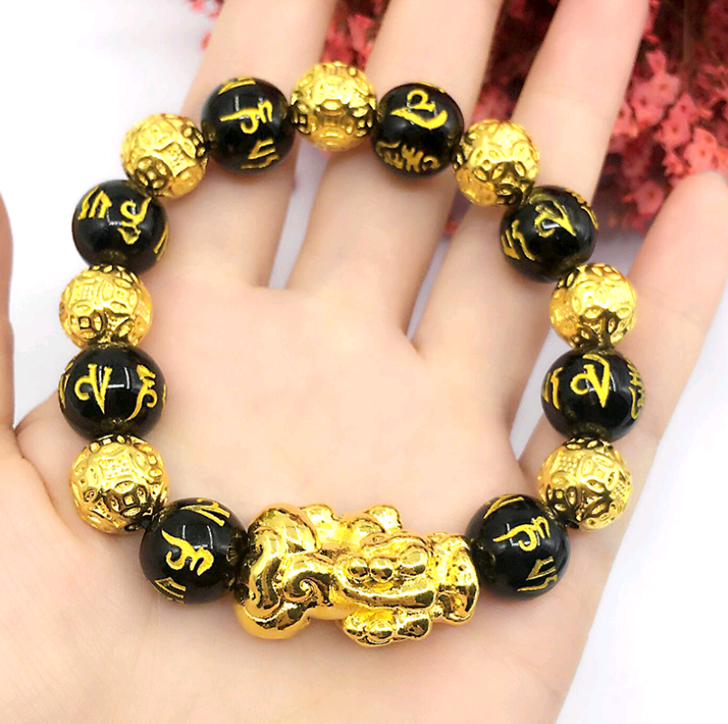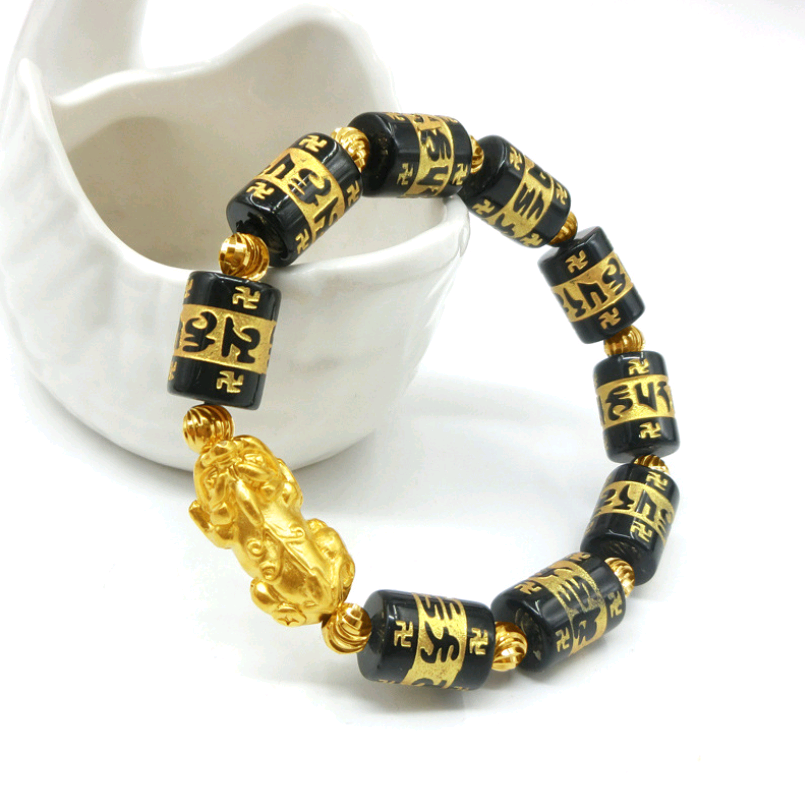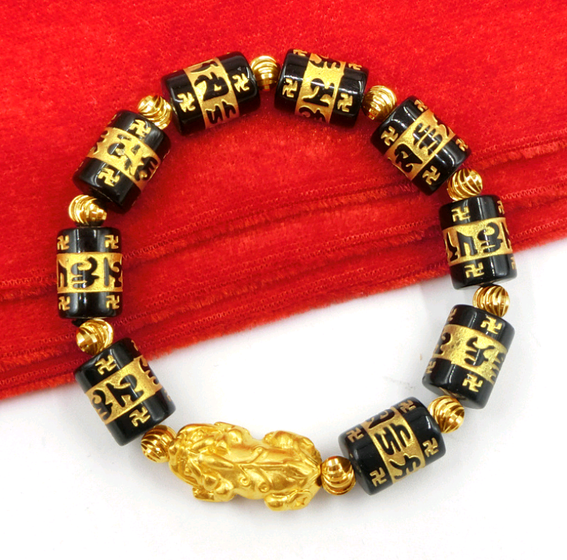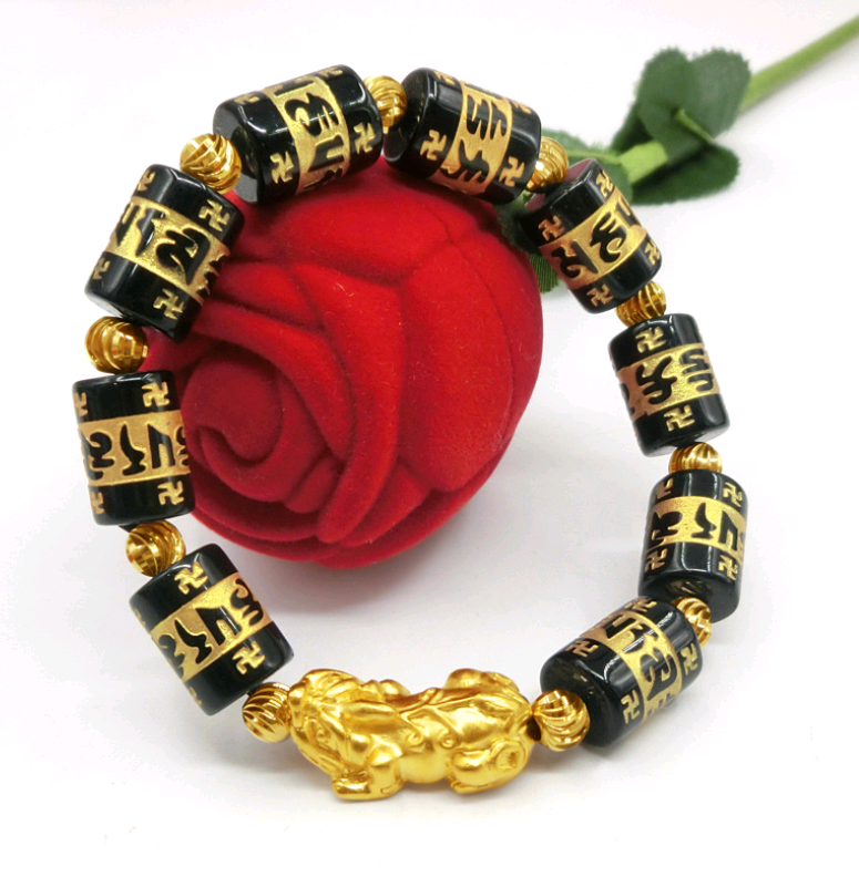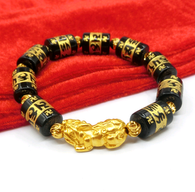 Men's 6-word Mantra Beaded Bracelet Big Compass Curse Watermelon Beads Lucky Money Handmade Chain