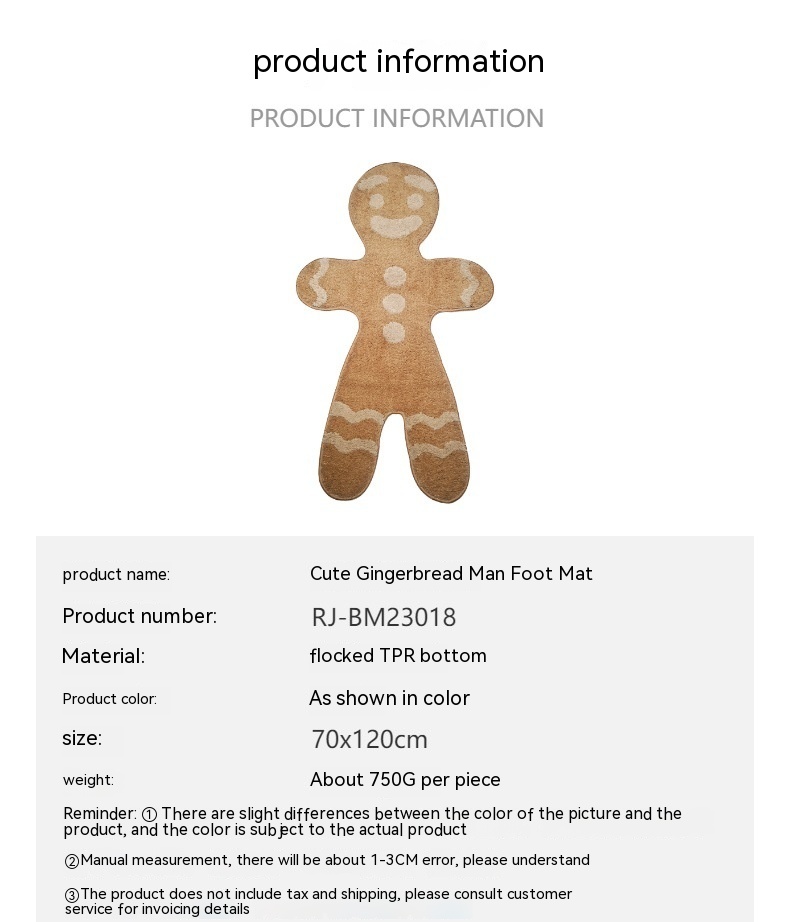 Product information:Pattern: cartoon anime Color: gingerbread man Cleaning type: Machine washable Material: Polyester Fiber (polyester) Size: 70x120cm Style: ins style Craft: flocking