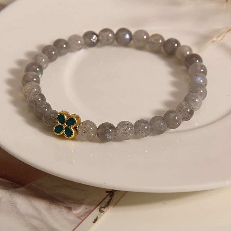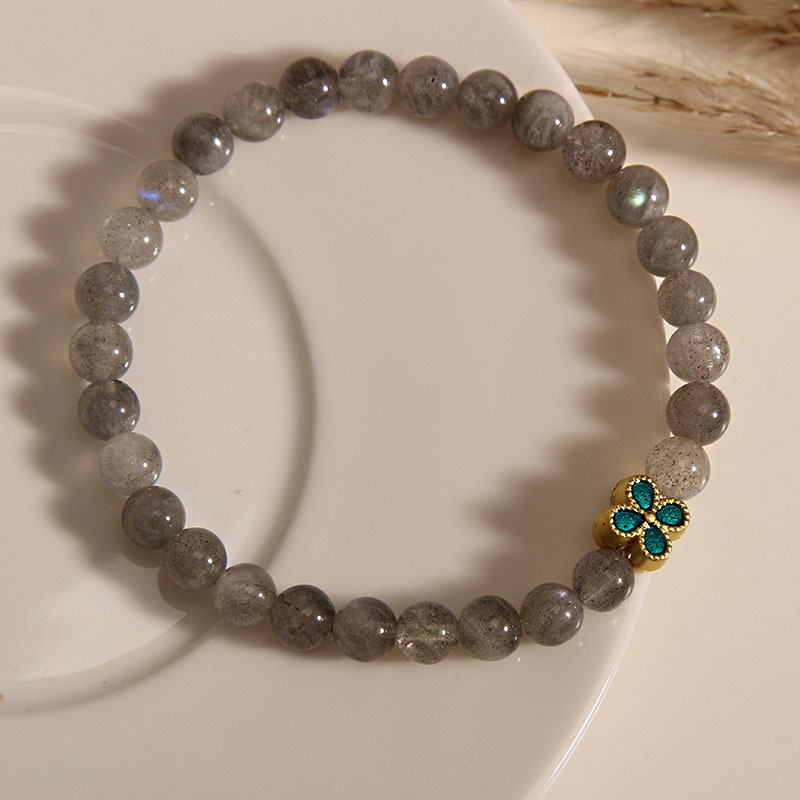 Gray Moonlight Stone Labradorite Peach Blossom Bracelet